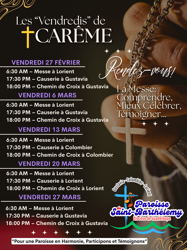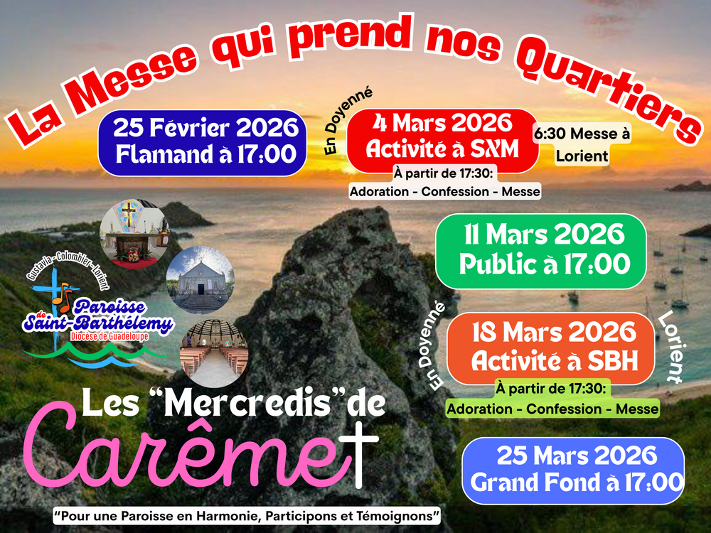 – Les jeudis de 16 h 00 à 17 h à Gustavia (Presbytère)