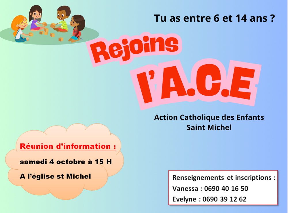 Tu as entre 6 et 14 ans, nous t’invitons à rejoindre l’ACE pour des activités. Viens à notre réunion d’information ce Samedi 04 Octobre à 15h00, à [...]