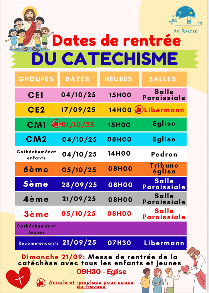 Messe de rentrée pour tous les jeunes au catéchisme le Dimanche 21 Septembre à 09h30