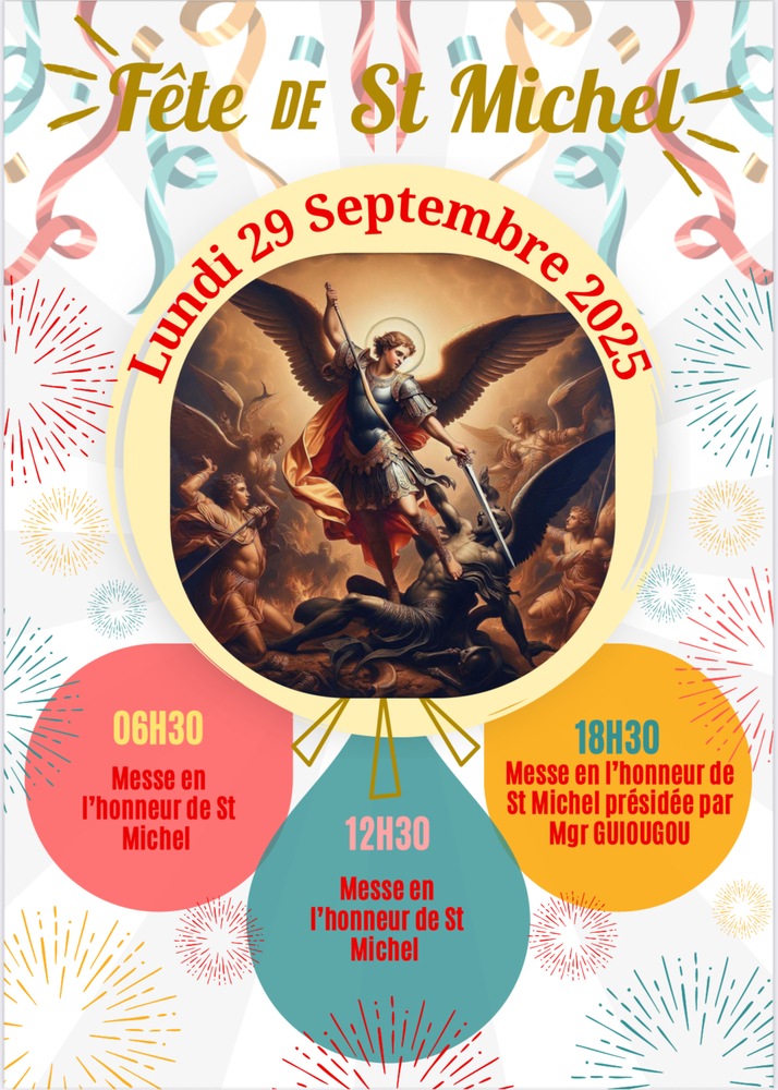 Programme de la Neuvaine à Saint Michel qui sera célébrée le Lundi 29/09 à 18h30 au Raizet par Mgr GUIOUGOU