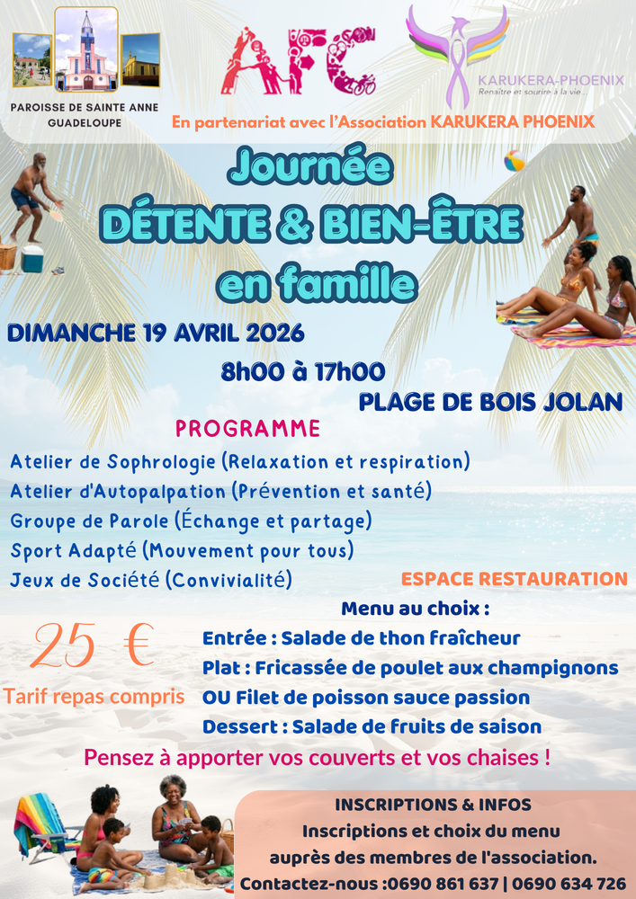 "Journée Détente et Bien-être" organisé par l'AFC de Sainte-Anne en partenariat avec l'association KARUKERA PHOENIX Le dimanche 19 avril 2026 de 8 [...]