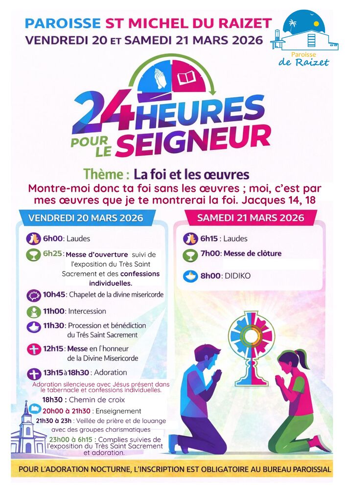 Vendredi20/03>Samedi21/0324 Heures pour le seigneur