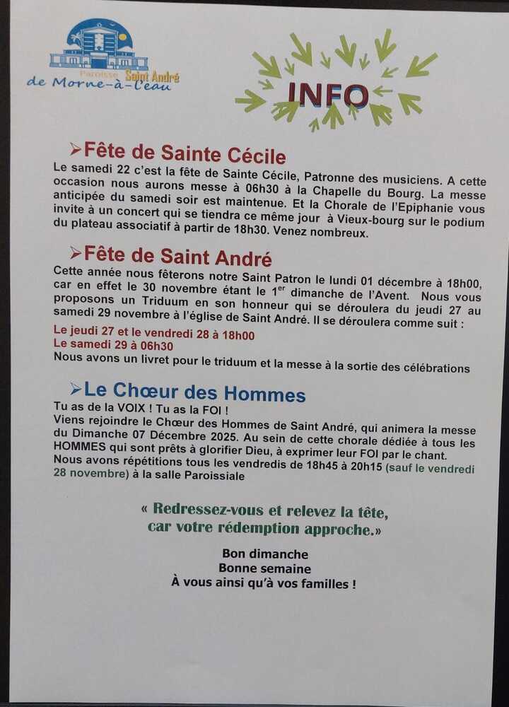 Dimanche16/11informations paroissiales