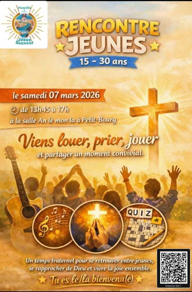 Après-Midi Frat’Jeunes Samedi 07 Mars 2026 Tu es âgé(e) de 15 à 30 ans ? Viens louer, prier, jouer, écouter et partager la parole de Dieu [...]