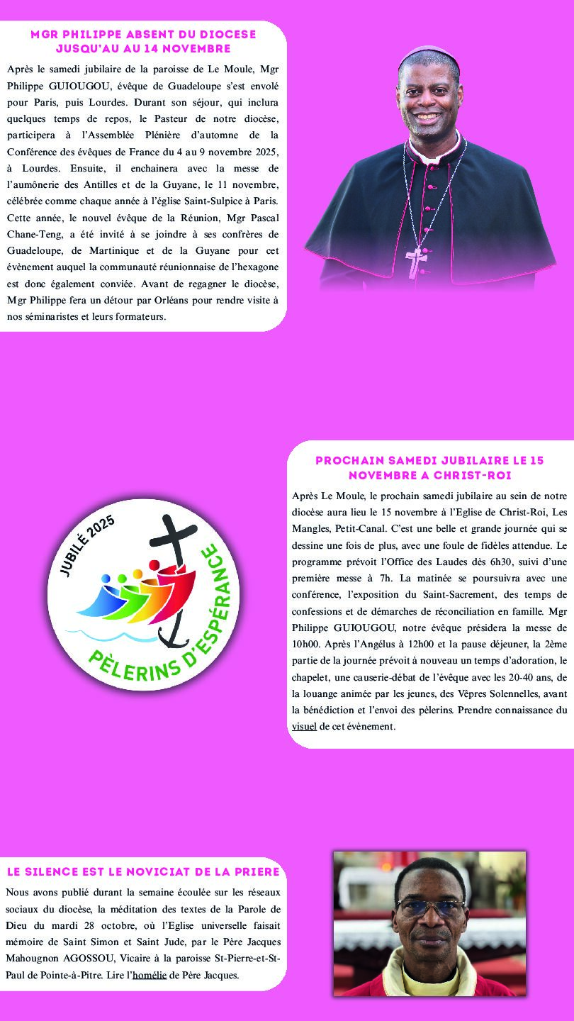 Après le samedi jubilaire de la paroisse de Le Moule, Mgr