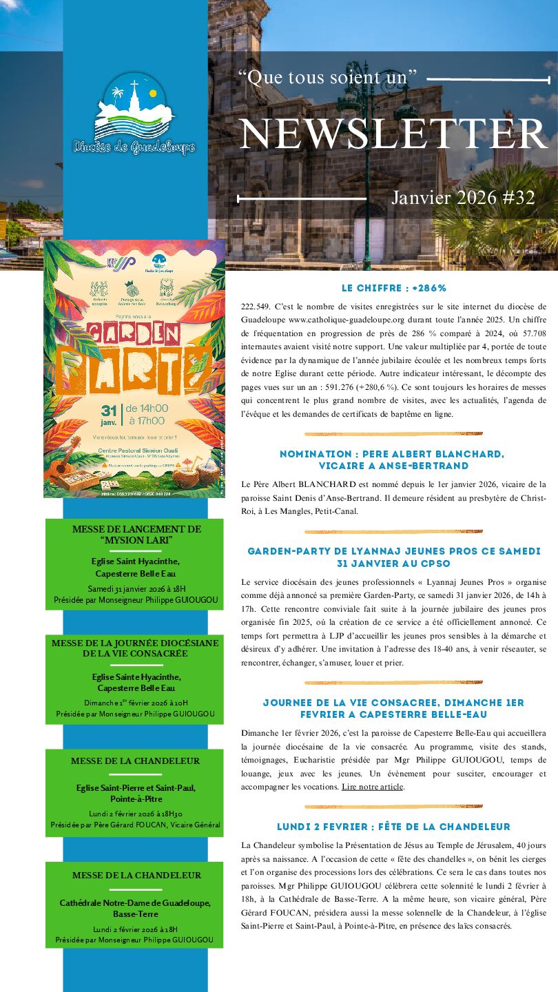 Guadeloupe www.catholique-guadeloupe.org durant toute l’année 2025. Un chiffre