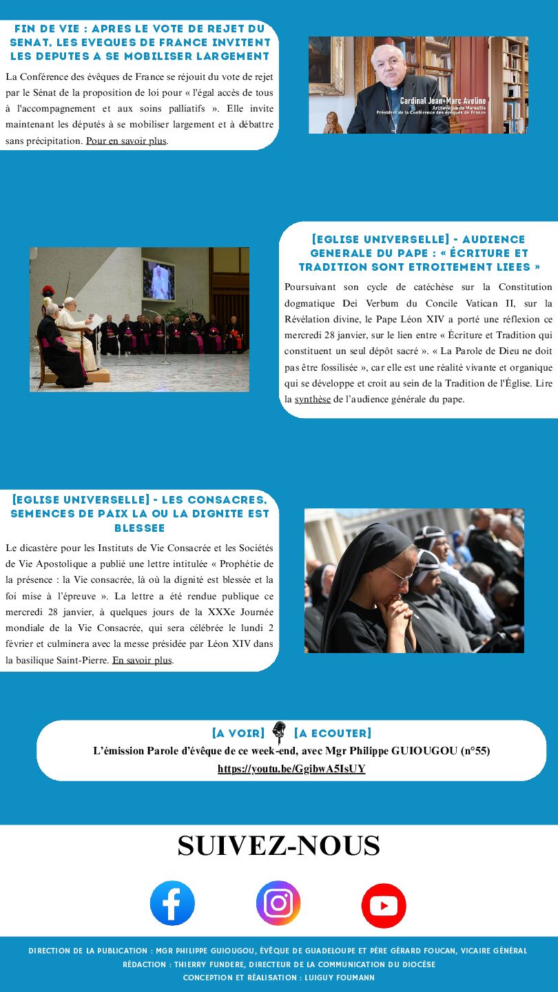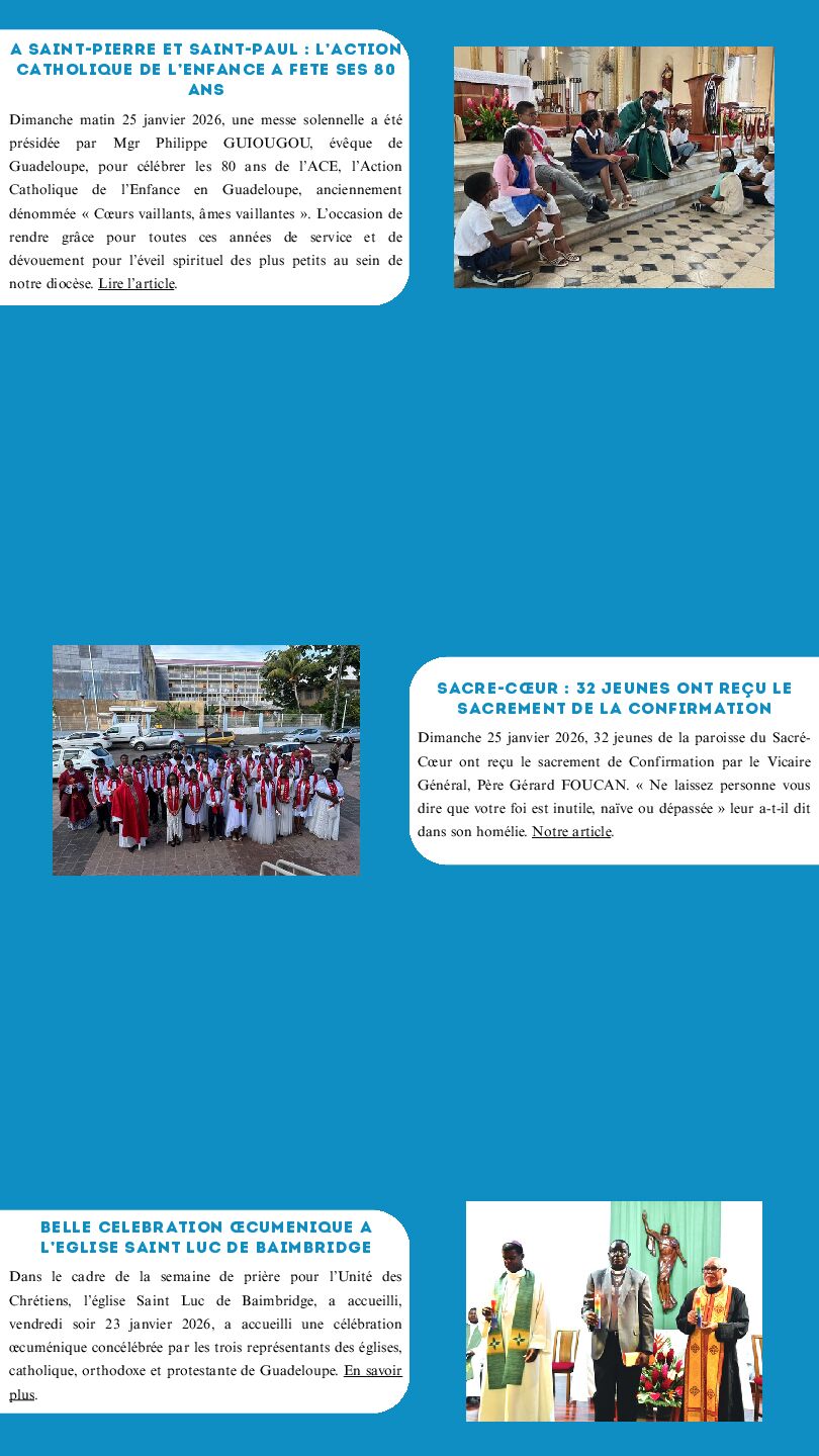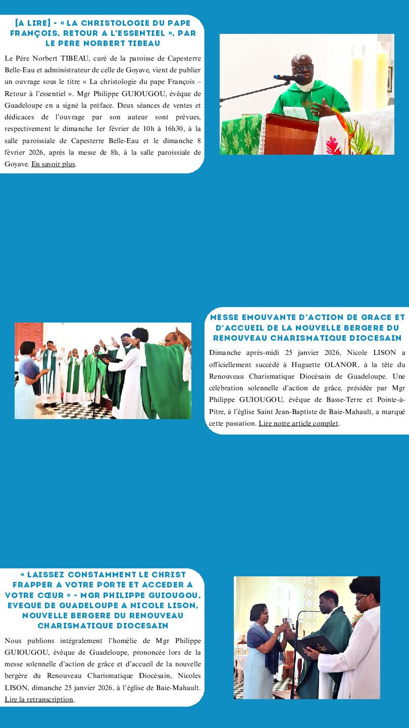 DIRECTION DE LA PUBLICATION : MGR PHILIPPE GUIOUGOU, ÉVÊQUE DE GUADELOUPE ET PÈRE GÉRARD FOUCAN, VICAIRE GÉNÉRAL