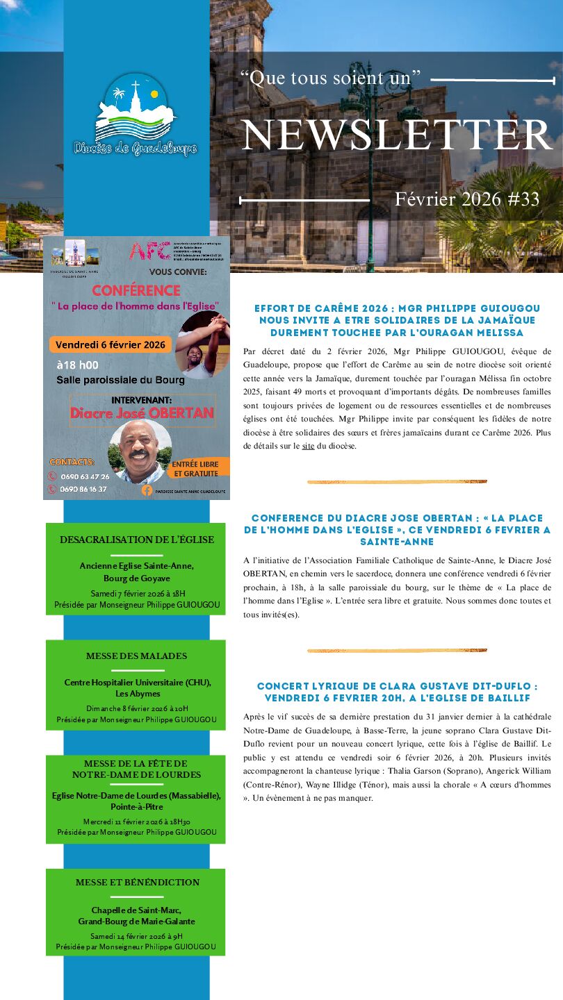 Nous vous prions de trouver ci-joint la newsletter diocésaine au format PDF.