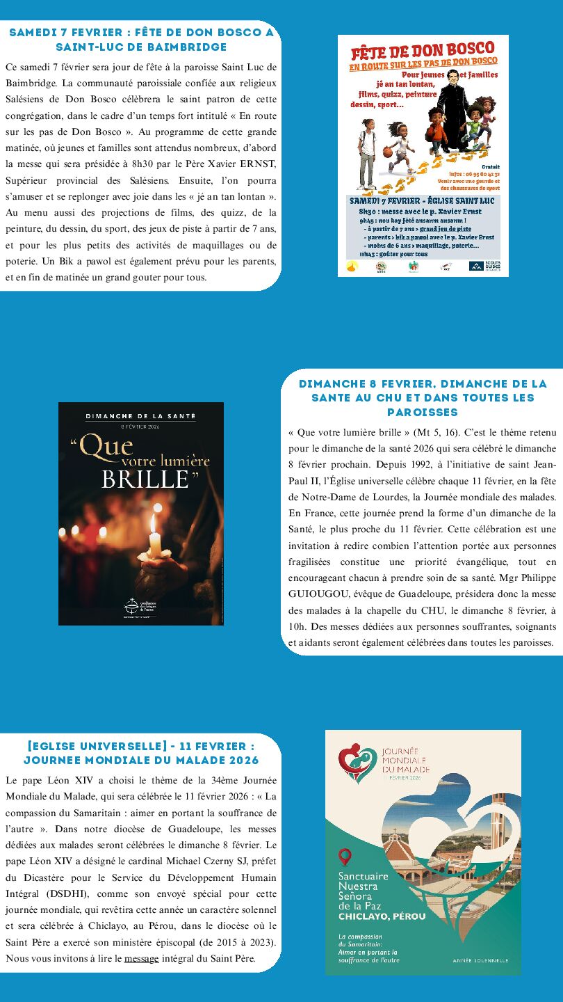dédiées aux malades seront célébrées le dimanche 8 février. Le