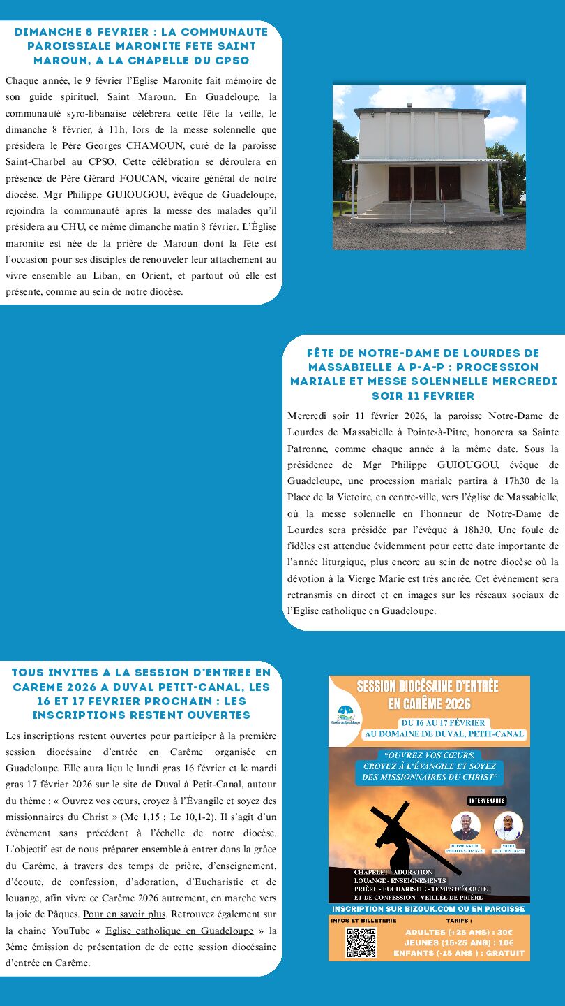 Guadeloupe, propose que l’effort de Carême au sein de notre diocèse soit orienté