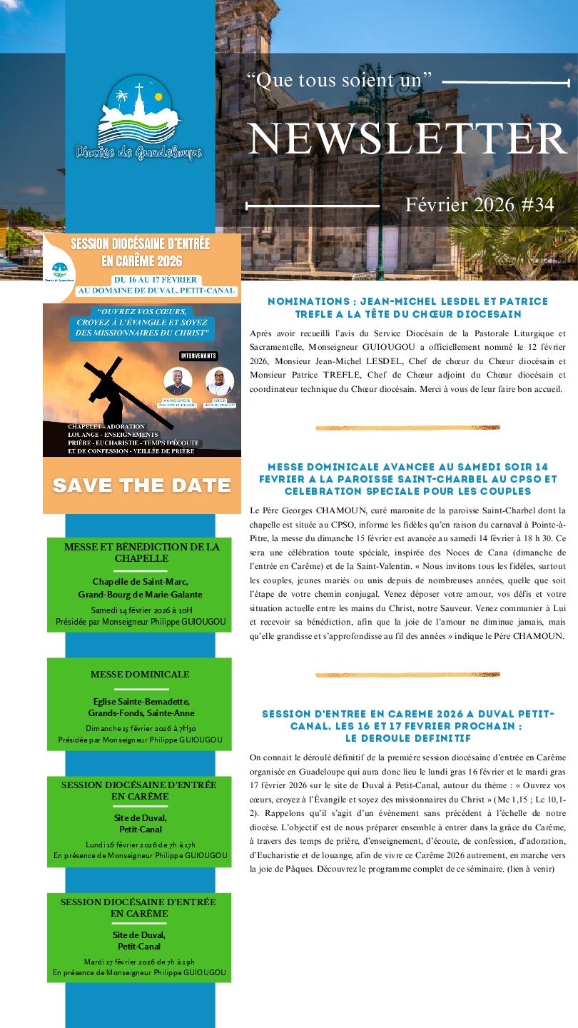 Nous vous prions de trouver ci-joint la newsletter diocésaine au format PDF.