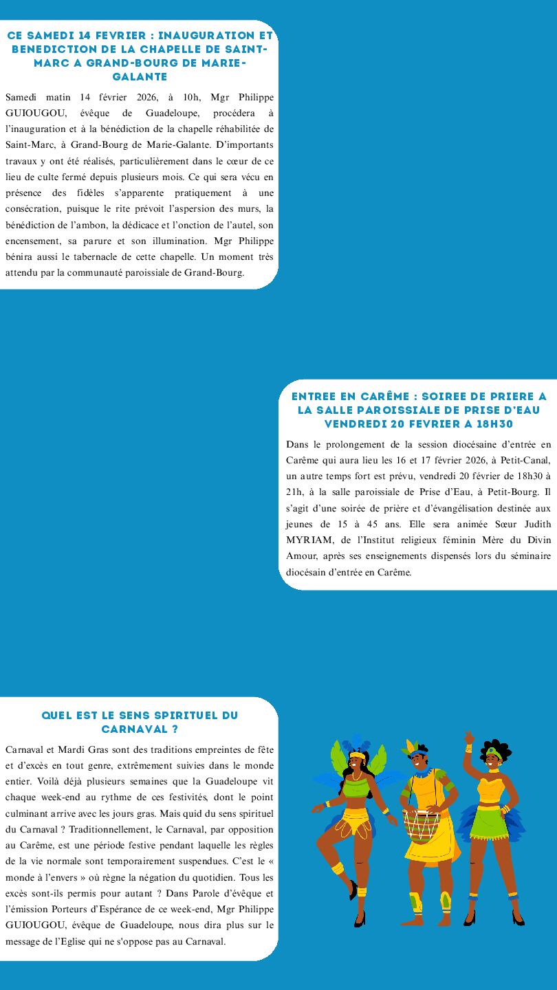 DIRECTION DE LA PUBLICATION : MGR PHILIPPE GUIOUGOU, ÉVÊQUE DE GUADELOUPE ET PÈRE GÉRARD FOUCAN, VICAIRE GÉNÉRAL