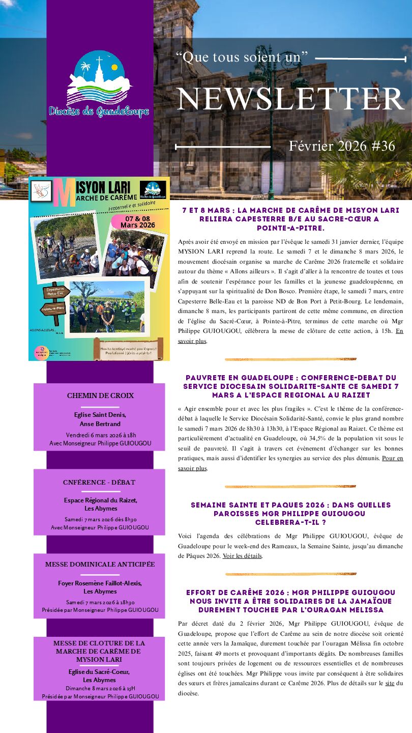 Guadeloupe, propose que l’effort de Carême au sein de notre diocèse soit orienté