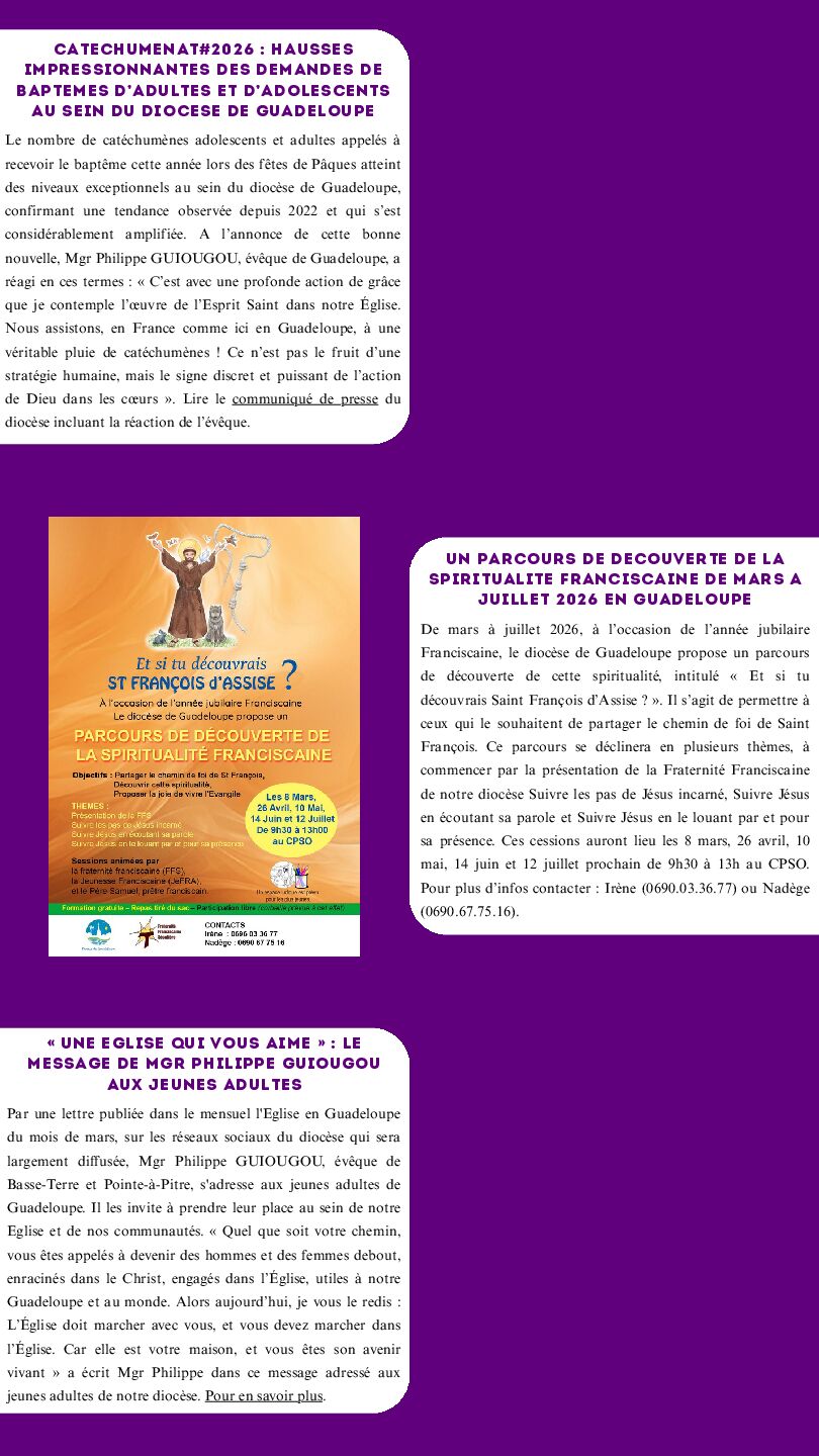 Franciscaine, le diocèse de Guadeloupe propose un parcours