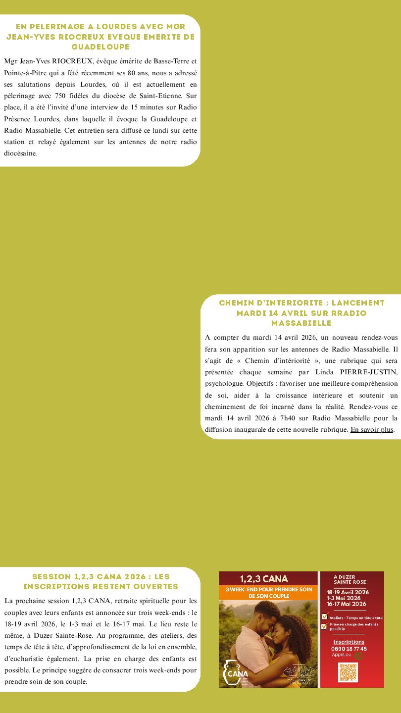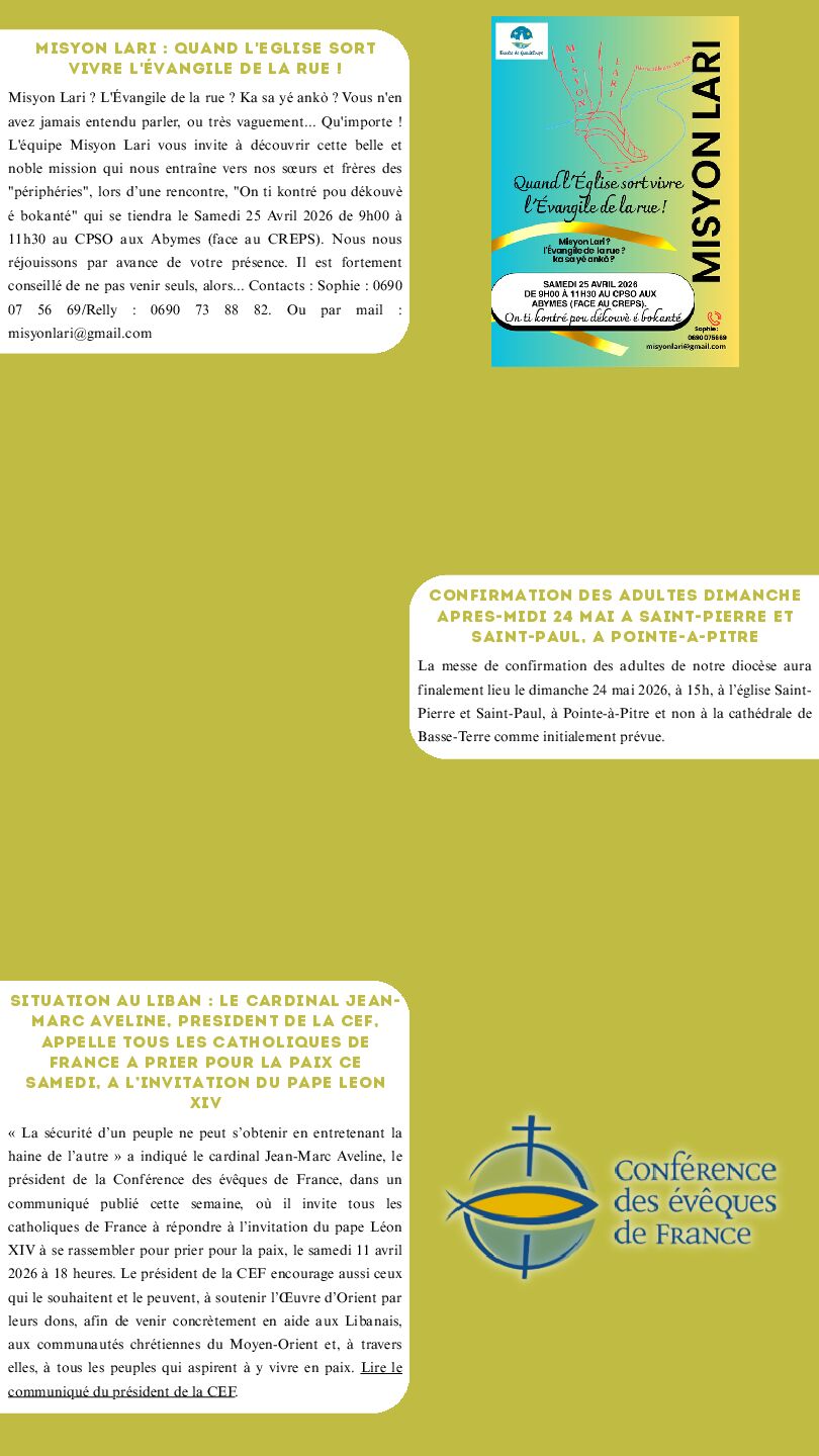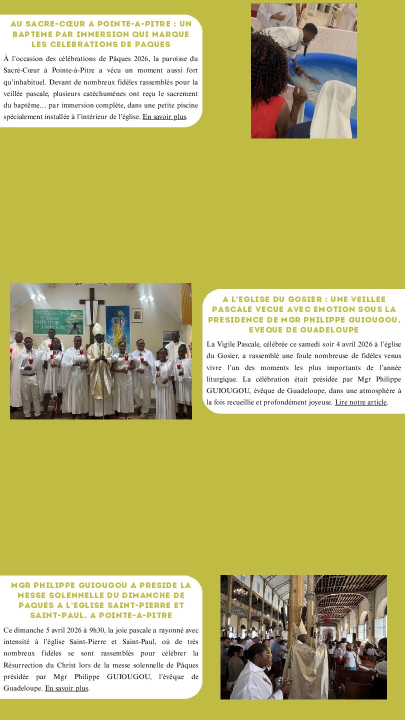 DIRECTION DE LA PUBLICATION : MGR PHILIPPE GUIOUGOU, ÉVÊQUE DE GUADELOUPE ET PÈRE GÉRARD FOUCAN, VICAIRE GÉNÉRAL