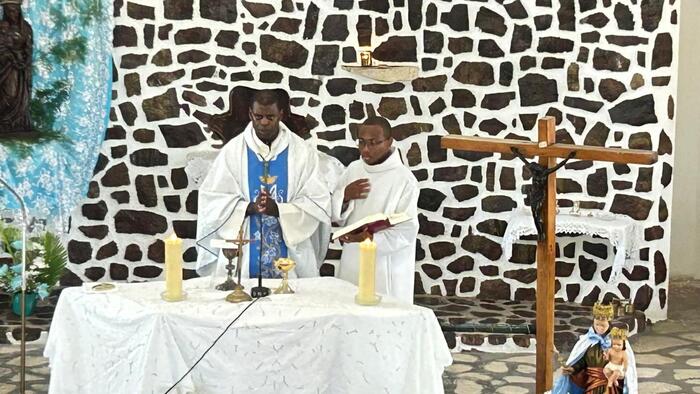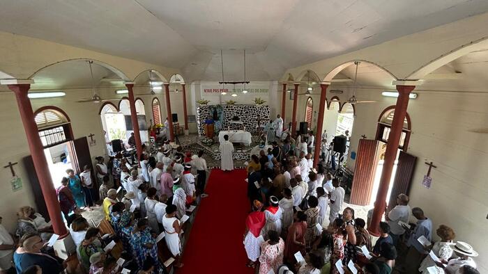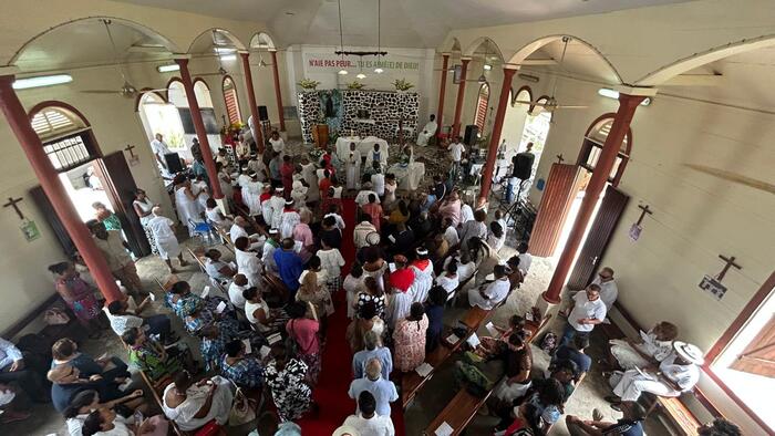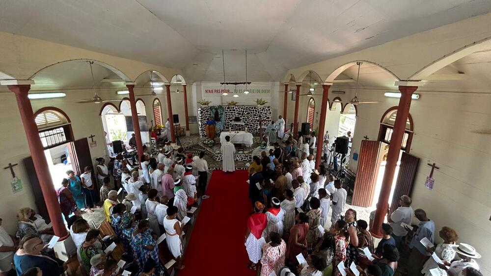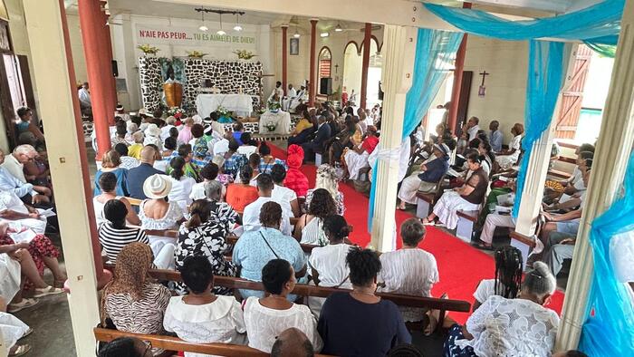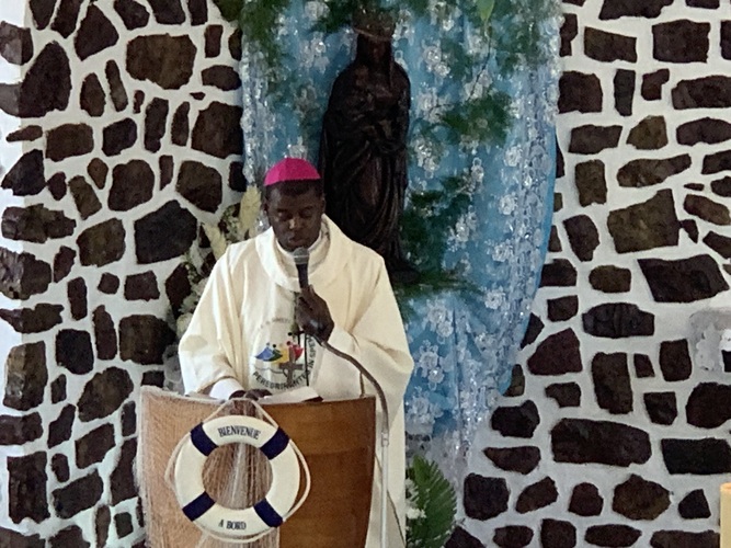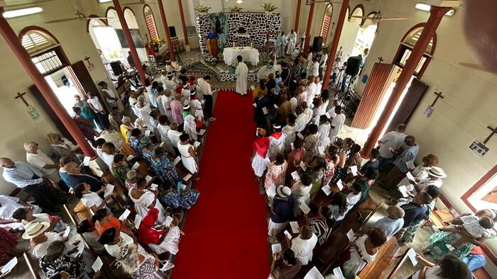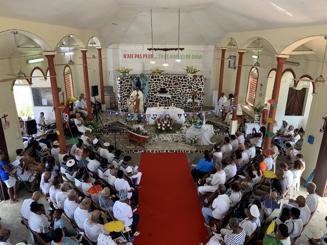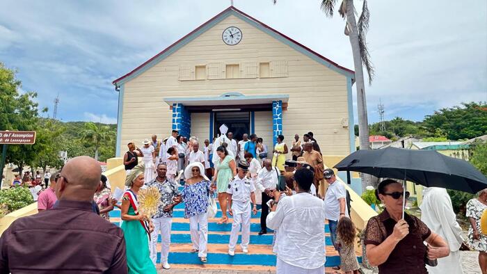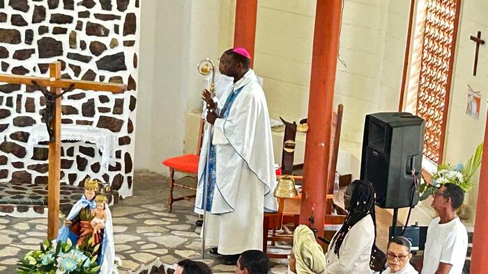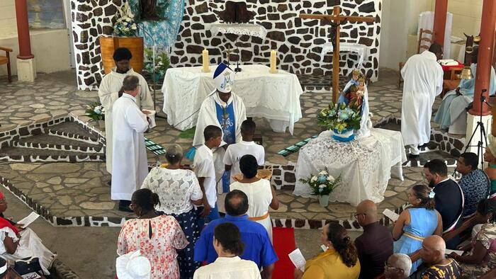 En trois jours, le pasteur de notre diocèse a présidé successivement, une messe de confirmation, la Solennité Mariale de l’Assomption, l’Eucharistie pour les marins, avant la traditionnelle procession se terminant par la bénédiction de la mer. Vous avez pu suivre en direct de l’église Notre-Dame de l’Assomption, à la Désirade, tous les évènements du week-end du 15 août sur les réseaux sociaux du diocèse. D’abord, le vendredi 15, pour la célébration de cette solennité de l'Église catholique, fêtée chaque année à la même date. L’Assomption coïncide avec la fête patronale de l’île, mais aussi avec celle de la paroisse de la Désirade.