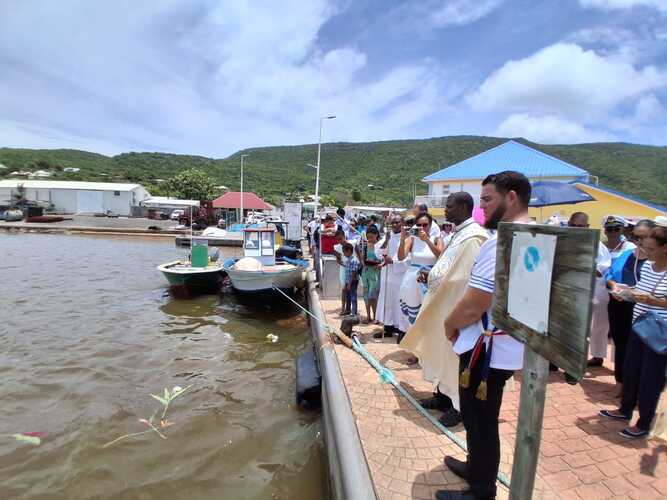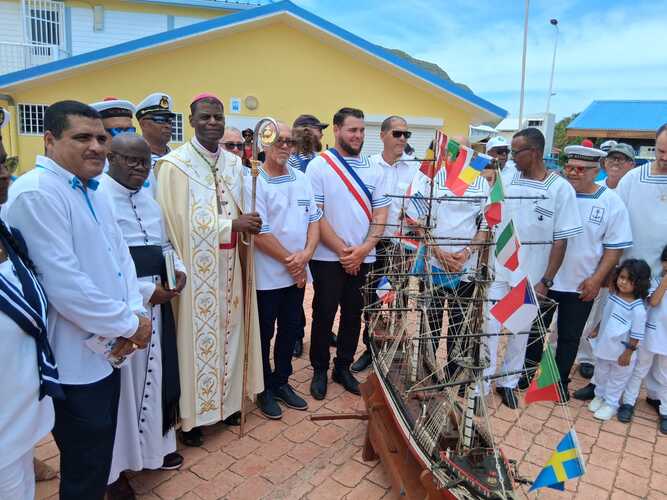 Samedi 16 août, au dernier jour de sa visite sur cette île en fête, l’évêque de Guadeloupe a aussi célébré la traditionnelle messe des marins-pêcheurs suivie de la procession, de la bénédiction de la mer et d’un jet de gerbes en mémoire des marins disparus. Lors de l’Eucharistie qui précéda, Mgr Philippe insista sur cette image que le défunt pape François a utilisé pour symboliser l’espérance, thème central de cette année jubilaire. « Il y a la croix qui ressemble à une ancre de bateau. Eh bien cette image que le pape a utilisé est une image aussi forte et souvent reprise dans l’Eglise. L’ancre symbolise l’espérance. A quoi sert l’ancre dans un bateau ? A éviter de dériver. C’est exactement cette image qu’il y a derrière la croix que le pape a utilisée pour symboliser l’année de l’espérance. L’ancre, la croix du Christ, nous évite de dériver, nous évite de partir en eau profonde et ne plus pouvoir revenir. L’ancre aussi c’est le symbole de la fidélité dans l’Eglise. Le pape à travers ces symboles dit aux fidèles, si vous voulez être stables, si vous ne voulez pas dériver, il faut vous accrocher à l’ancre et surtout au Christ ».