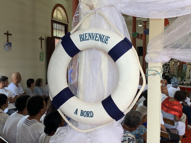 « Quelques fois, nous affrontons les tempêtes de la vie seul, oubliant cette ancre qui est Dieu. Il arrive que nous affrontions seuls les tempêtes de la vie qui peuvent être multiples : la maladie, la perte de son travail… en oubliant qu’il y a l’ancre qui est là, le Christ, celui qui est mort sur la croix pour nous sauver. La force de la croix c’est qu’elle est plantée en terre et elle se dresse vers le ciel. Donc la croix, est cette image que l’on utilise aussi dans la Bible, qui relie ciel et terre. Le Christ est ce lien entre le ciel et la terre. A chaque fois que nous oublions cette ancre, c’est Dieu que nous oublions. Parce que derrière l’ancre, c’est le Christ, c’est Dieu lui-même. C’est lui notre espérance. C’est lui qui est mort et ressuscité. Donnons aussi une place, pleine et grande, à cette croix dans nos vies. Cette croix qui n’est pas simplement un bijou, une décoration, quelque chose qui fait beau si nous l’accrochons à notre mur ou si nous là mettons sur notre bateau. Cette croix a une force. La force en Christ, cette stabilité, cette assurance de ne pas dériver ou en tout cas, même si nous dérivons à un moment, nous allons revenir à bon port avec le Seigneur » a ajouté l’évêque de Guadeloupe.
