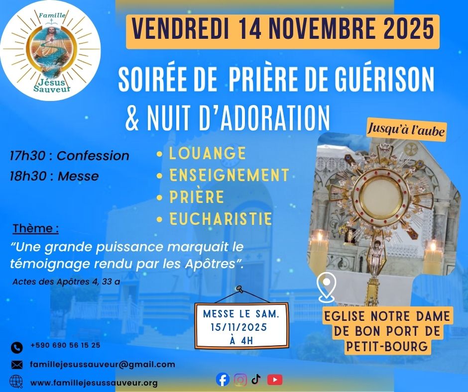 Rejoignez-nous le VENDREDI 14 NOVEMBRE 2025 pour la "Soirée de Prière de Guérison & la Nuit d’Adoration" À l’Église Notre-Dame de Bon Port – [...]
