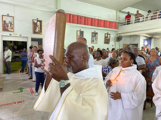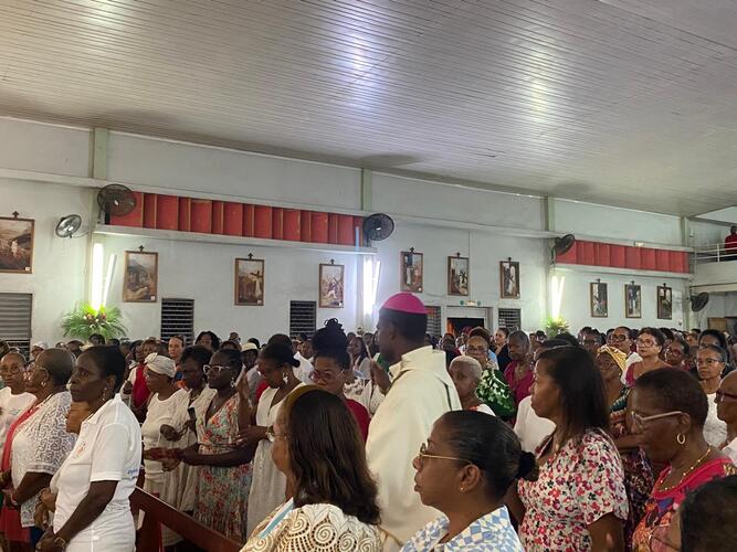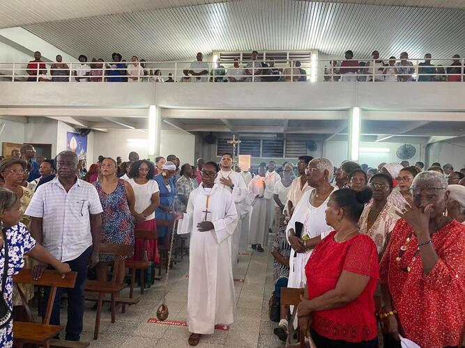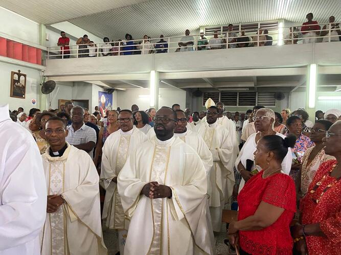 La messe solennelle, présidée par Monseigneur Philippe Guiougou l’Évêque de Guadeloupe, a rassemblé une grande assemblée de fidèles venus rendre grâce et confier leurs vies à celui que l’Église appelle le protecteur et défenseur du peuple de Dieu.
