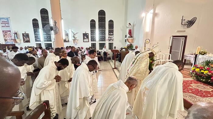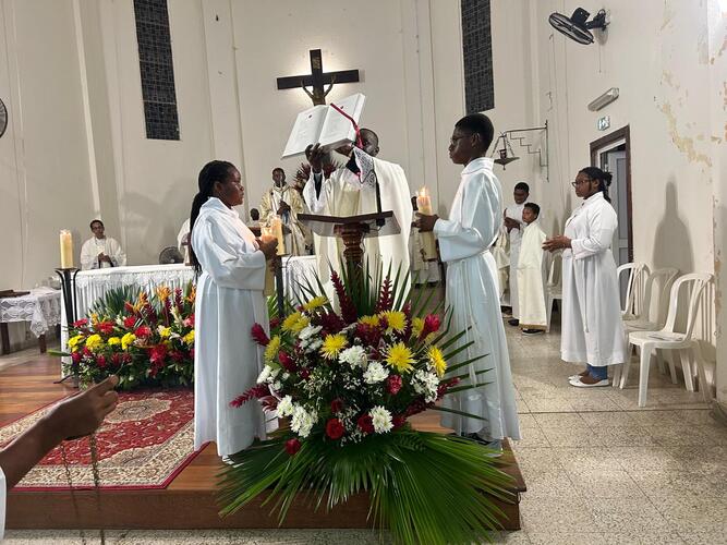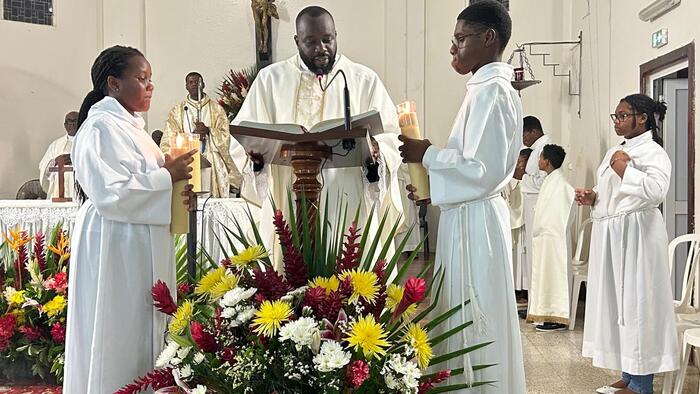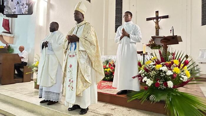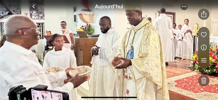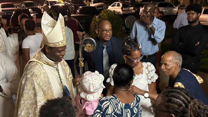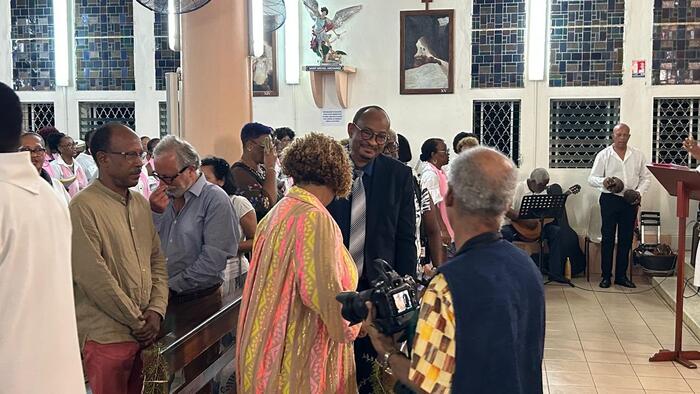Signe de la collaboration entre l’Eglise et les autorités civiles au sein de notre diocèse, qui se vérifie dans toutes les paroisses, le maire de Petit-Bourg, David NEBOR, était présent à cette célébration, avec plusieurs membres de son équipe municipale.