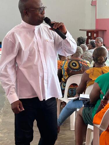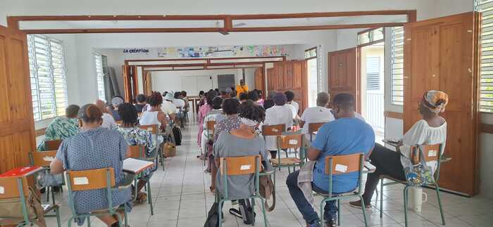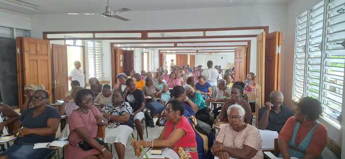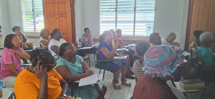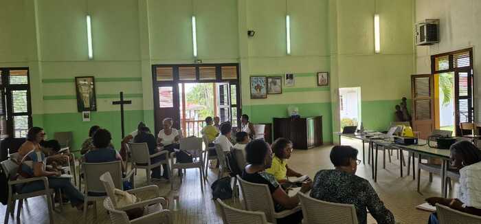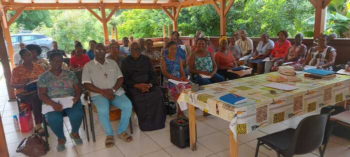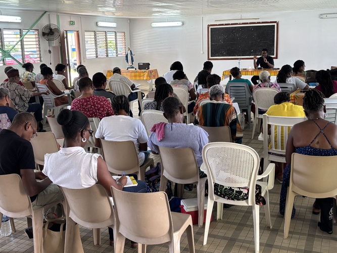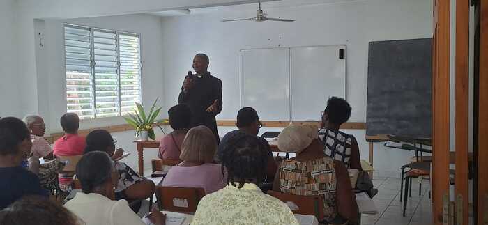 Rentrée réussie aussi à Sainte-Anne, où le Père Frédéric ESSENGO enseignait sur la spiritualité et la prière chrétienne, en présence de Père Paulin MUTORO, délégué épiscopal à la formation permanente diocésaine, qui était là pour lancer cette année. Même élan missionnaire à Capesterre Belle-Eau, où une vingtaine de disciples en marche ont participé activement au cours d'anthropologie chrétienne de Catherine ROMUALD. Enfin, à Petit-Bourg, la salle paroissiale était bien garnie pour le cours de morale fondamentale très documenté du Père Jean-Lucien JOSEPH, le curé du Sacré-Cœur. Partout, ces sessions ont été assurées de 9h à 12h. Rendez-vous est déjà pris pour la suite, le samedi 8 novembre prochain.