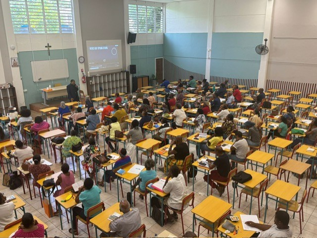A titre d’exemple, à Morne-à-l’Eau, 73 participants venus de tout ce doyenné étaient là dès 7h30, pour leur premier cours de catéchèse et évangélisation avec Sœur Franciane SAINTE-LUCE. Après avoir signé la feuille de présence, un temps d’accueil et de prière a été assuré par le Père Godefroy, curé de la paroisse, en attendant son arrivée. A Bouillante, 40 fidèles du doyenné de Pointe-Noire ont répondu présents au cours de liturgie et sacrement avec le Père Roland KINKOUNI comme intervenant. Belle assistance également à l’établissement scolaire de Massabielle qui accueillait les inscrits du doyenné de Pointe-à-Pitre, où le Père Isidore MBOKOLO a dispensé son premier cours de Crédo et fondements dogmatiques.