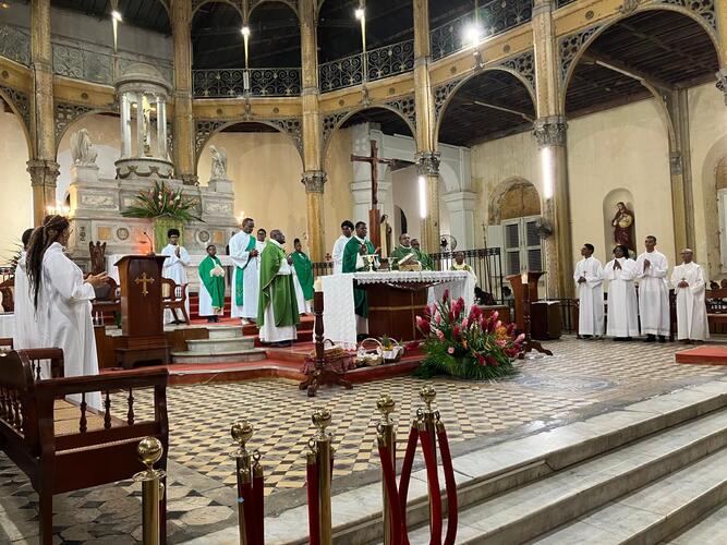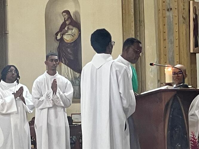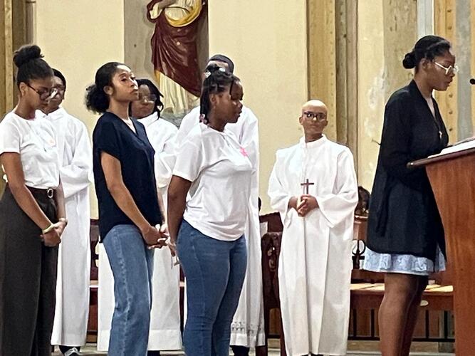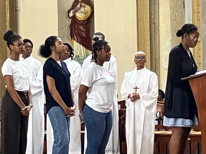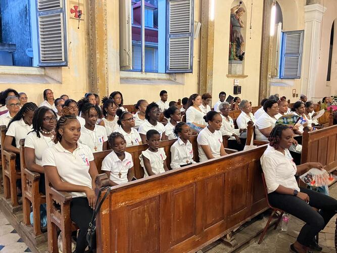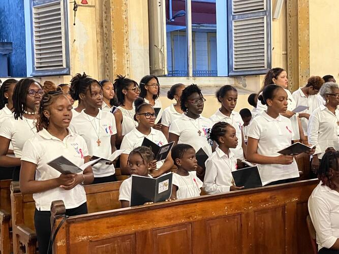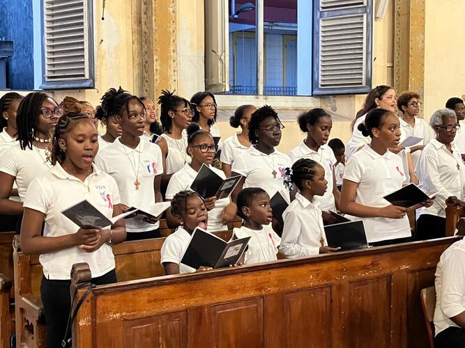 A noter que cette belle célébration eucharistique a été animée avec le talent qu’on lui connait, par le Chœur VDA du Raizet. Merci également aux groupes Colombes Sing, Effusion, au Chœur des jeunes, à JMJC971, à la JOC et à la communauté de l’Emmanuel qui ont largement contribué aussi au succès ce moment d’Eglise consacré à nos étudiants.