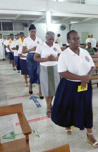 Après que les 12 nouveaux se soient présentés devant l'Autel, le Curé a demandé à tous les membres du groupe Myriam de venir en procession depuis le fond de l'Eglise.