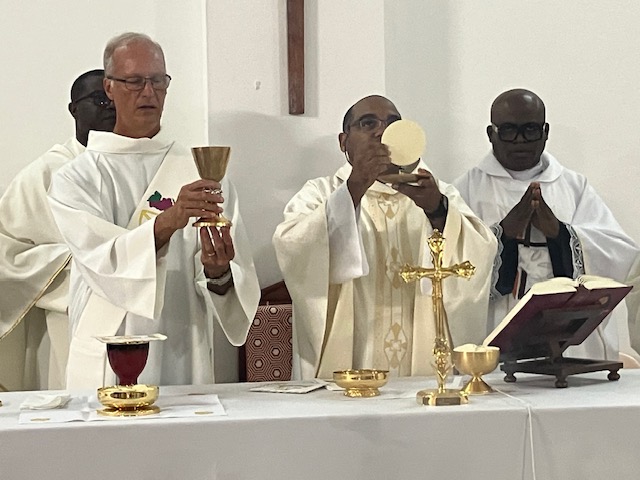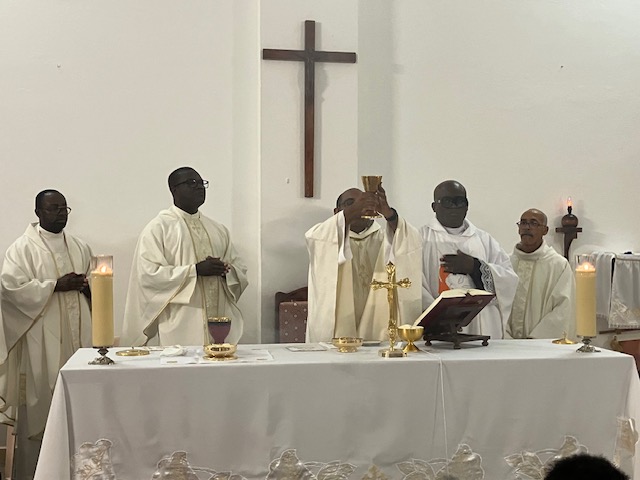 A noter que plusieurs prêtres ont honoré de leur présence cette messe de fête patronale de la chapelle de la Retraite. Parmi ceux-ci, le Père Isadan, Supérieur majeur des Spiritains en Guadeloupe, le Père Lucien, curé de Saint-Claude, Père André DENECY, curé de Lamentin et Doyen du Doyenné, le Père Bonel SAINT-FLEUR, curé de Prise d’Eau, le Père Jacques, vicaire de Saint-Pierre et Saint-Paul. Ont tenu à être là également, le Père Dismas, curé du Gosier, le Père Paulin, curé de Sainte-Bernadette, le Père Dismas curé du Gosier, le Père Luc Maixent curé de Deshaies, le Père Gilles curé de Saint-Louis de Marie-Galante et enfin le Père Innocent, actuellement en mission à Anse-Bertrand avant rejoindre d’ici peu, la paroisse de Baie-Mahault comme vicaire. Sans oublier les Diacres Frantz et Alain.