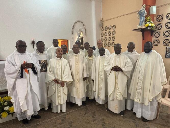 Lundi soir 3 novembre 2025, c’était donc jour de fête en cette chapelle Saint Martin de Porrès de La Retraite dont tous les bancs étaient garnis pour célébrer le saint patron sous le vocable duquel ce lieu a été baptisé. C’est le Père Gérard FOUCAN, vicaire général du diocèse qui présida cette célébration solennelle, en habitué car il a assuré l’intérim durant plusieurs mois à la tête de cette paroisse avant que Père Roland KINKOUNI ne soit nommé en septembre dernier.