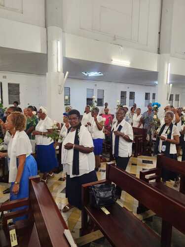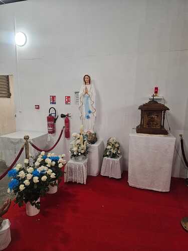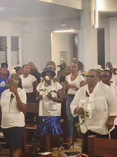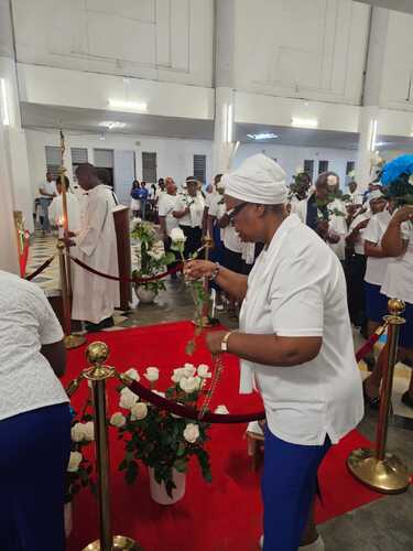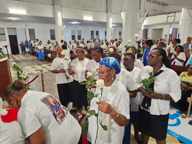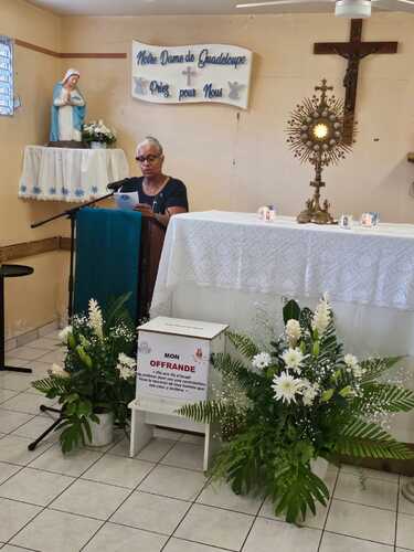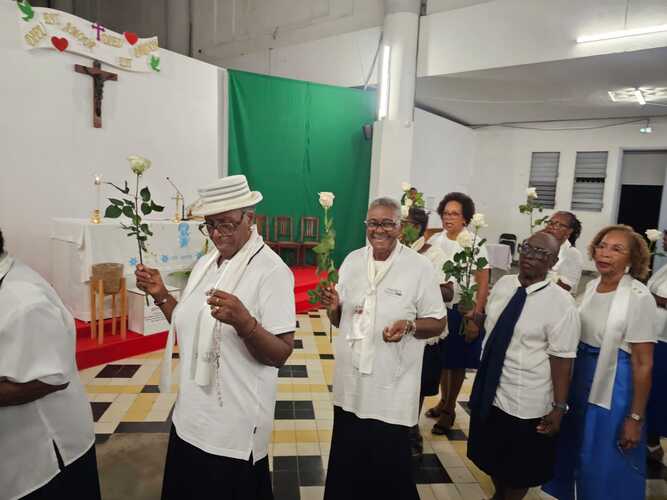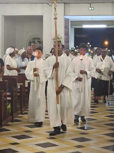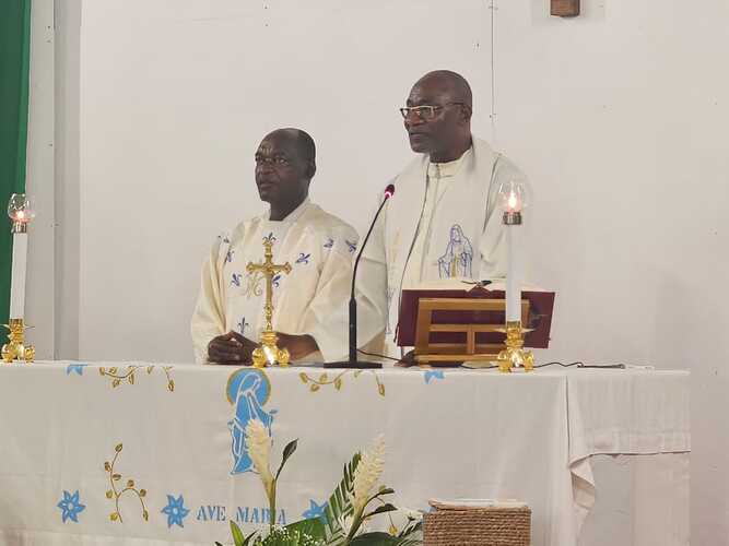 Marie, femme d'intercession. Toute la journée nous avons prié notre mère du ciel à la chapelle et au cours de la messe du soir à l'église, en procession, elle a été fleurie par les équipes du Rosaire et Légion de Marie. Ce fût aussi l'occasion pour l'assemblée d'accueillir le nouveau vicaire de la paroisse en la personne du père Côme Odon Calixte TSHIAMALA, de l'Institut Missionnaire des Amis du Christ. Bienvenu à lui et bonne mission.