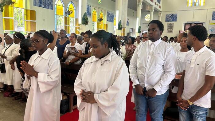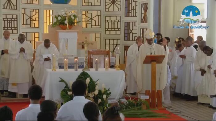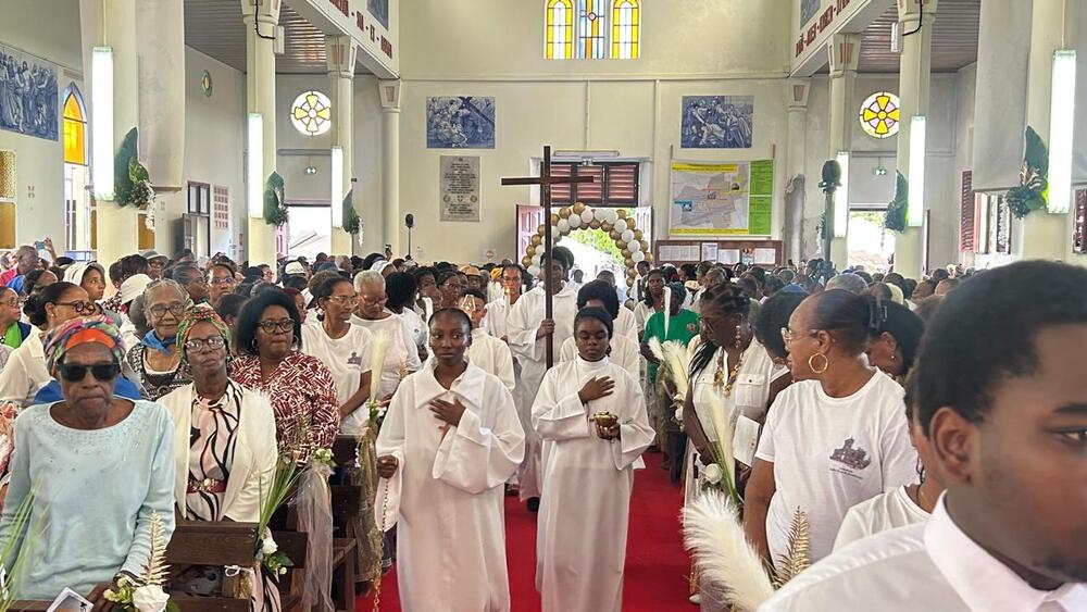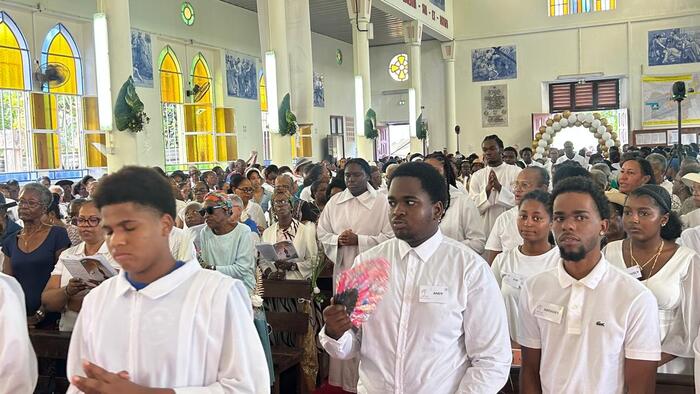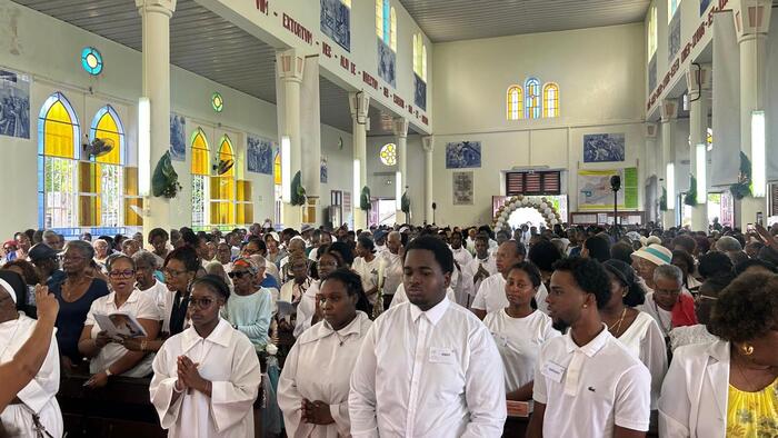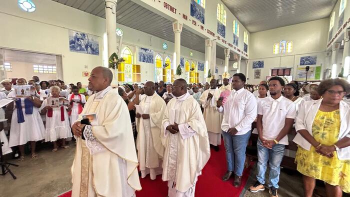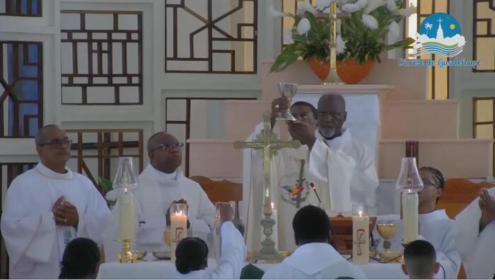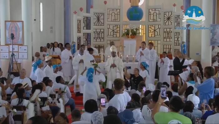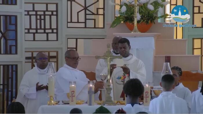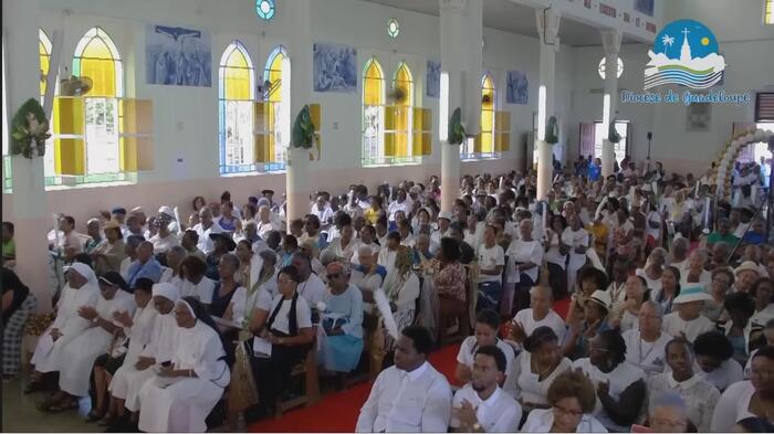 Ce samedi jubilaire de l’église de Christ-Roi, aux Mangles a donc été une grande réussite. Bravo aux pèlerins bien entendu, venus de toute la Guadeloupe. Mais surtout bravo à toutes les petites mains (décoration, liturgie, sécurité, logistique, accueil, équipes sanitaires, servants d’autel, sacristie…) qui se sont affairées sans ménagement autour du Père Frédéric ESSENGO, le curé et de son vicaire, le Père Cédric BLONDIN, pour permettre au peuple de Dieu en Guadeloupe, et ailleurs grâce aux réseaux sociaux, de vivre ce magnifique samedi jubilaire. Une répétition grandeur nature avant la fête patronale de cette paroisse de Christ-Roi qui sera célébrée dimanche 23 novembre prochain et qui attire chaque année la grande foule.