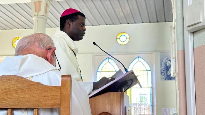 Auparavant, c’est le diacre Ismaël qui proclama l’Evangile de Jésus Christ selon saint Luc (Lc 18, 1-8), « Dieu ne ferait pas justice à ses élus, qui crient vers lui jour et nuit ». L’évêque de Guadeloupe insista aussi dans sa prédication sur la question centrale de cet Evangile. « Le Christ, quand il viendra sur terre, trouvera-t-il la foi ? Des hommes et des femmes croyants, ayant foi en lui ? » La foi, l’une des trois vertus théologales, avec l’espérance et la charité, rappelées par le Pasteur de notre diocèse à l’assemblée des fidèles.