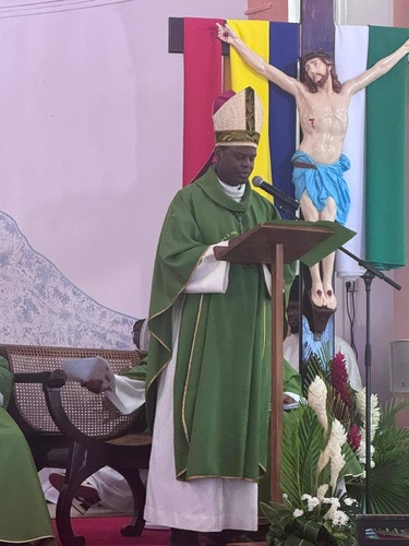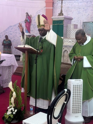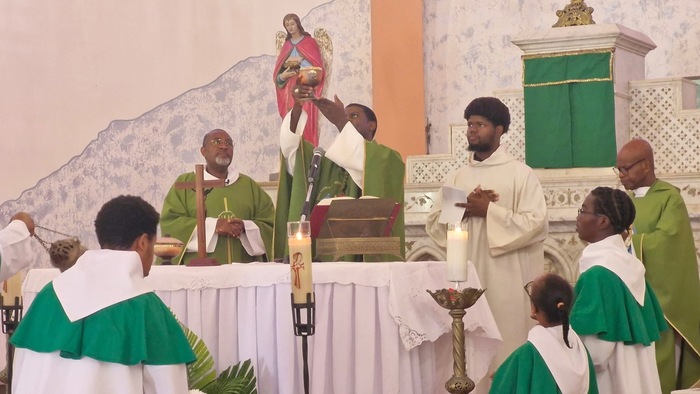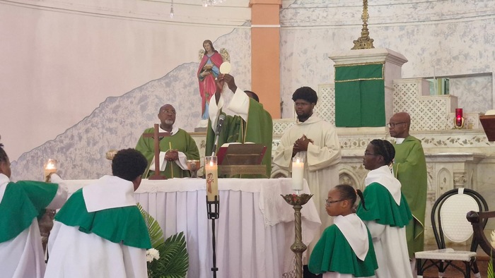 La messe solennelle était présidée 10h30 par Mgr Philippe GUIOUGOU, évêque de Guadeloupe, avec pour l’assister, le Père SUFFRIN, aumônier des groupes de ND de Montligeon et le Père LAVAUD, curé de la paroisse de Sainte-Anne. Cette Eucharistie a réuni de nombreux fidèles qui ont écouté avec attention l'homélie du Pasteur de notre diocèse.