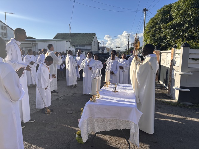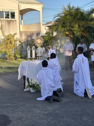 L’Assemblée se dirige vers le 4 eme reposoir en chantant « À toi puissance et gloire, à toi honneur et force, au dieu à jamais! »