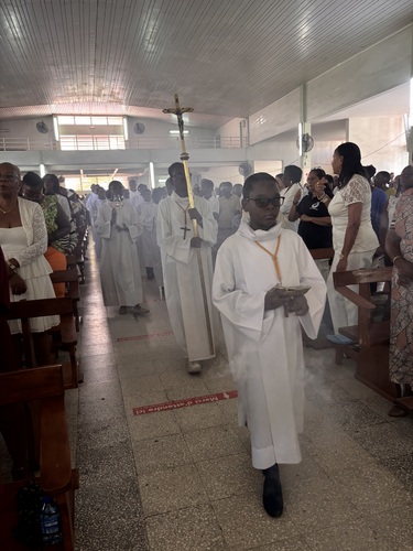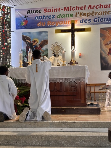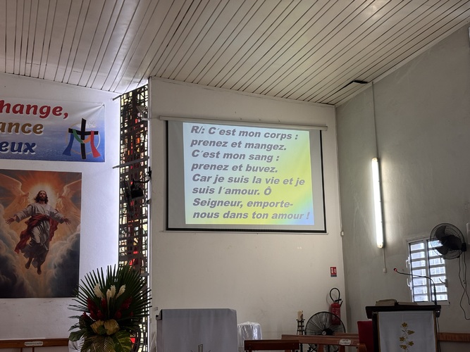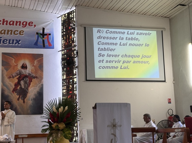 Chant entonnes par la chorale « Tu es là au cœur de nos vies et c’est toi qui nous fait vivre bien vivant au jesus christ »