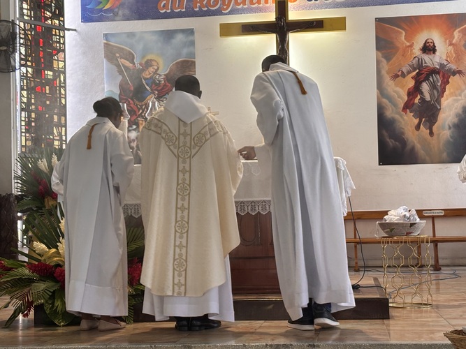 Le prêtre envoi l’assemblée dans la joie, en mission pour proclamer notre foi avec assurance en étant des citoyens universels et éternels.