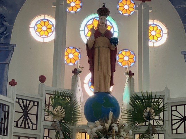 L’église Christ-Roi, à Les Mangles, Petit-Canal, est la seule de notre archipel à porter ce vocable. Chaque année elle fête ainsi son saint patron à l’occasion de cette Solennité qui marque la fin de l’année liturgique. Vu l’affluence constatée pour les deux offices du dimanche 23 novembre 2025, l’idée d’une 3ème messe lors de cette fête patronale pourrait faire son chemin.