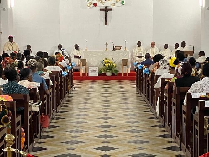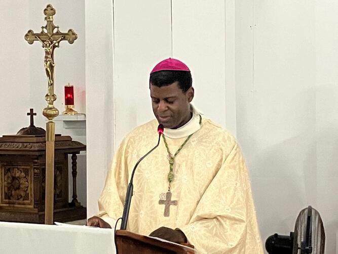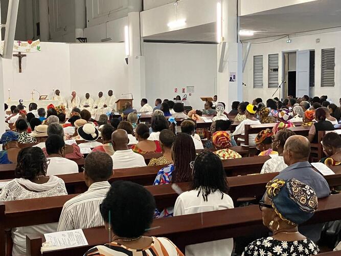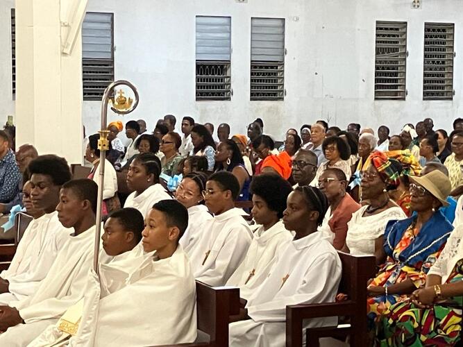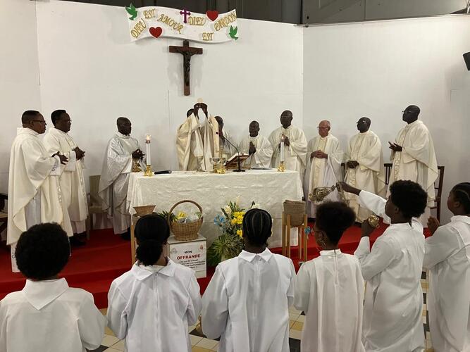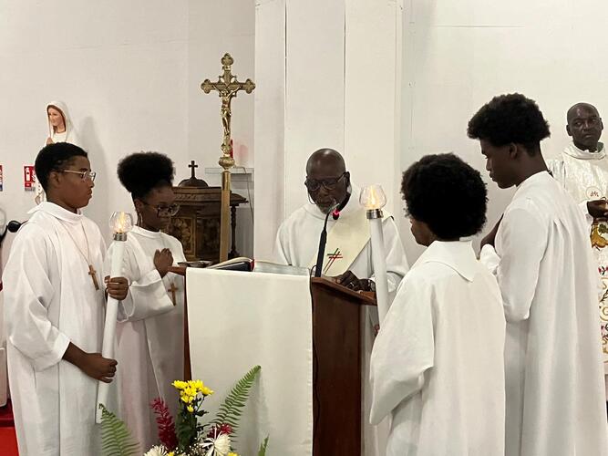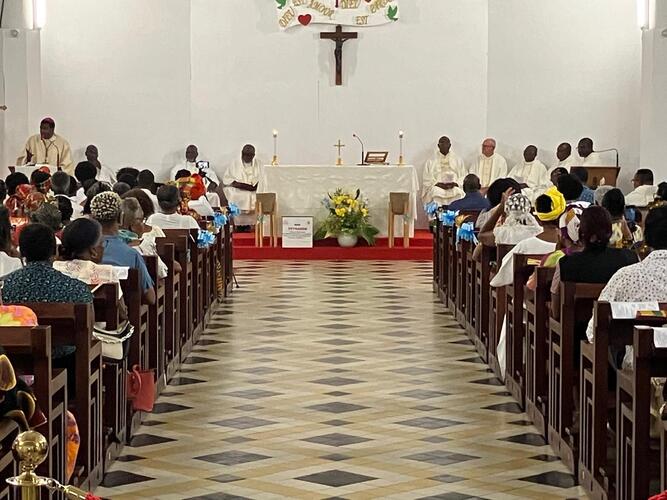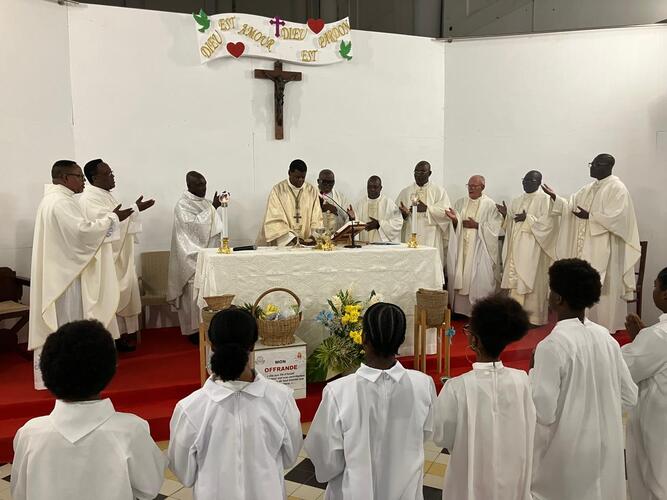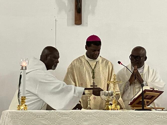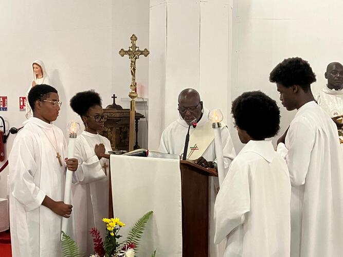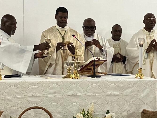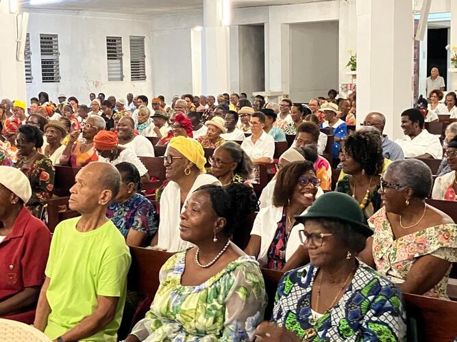 Un jubilé vécu avec émotion par le pasteur de cette paroisse avec une célébration eucharistique d’action de grâce qui était présidée par Mgr Philippe GUIOUGOU, évêque de Guadeloupe, en présence de plusieurs autres prêtres de notre diocèse. C’est un très bel hommage qui a été rendu par toute la communauté paroissiale à son curé, le Père Godefroid. Nous vous proposons de revenir en images sur ce beau moment d’Eglise.