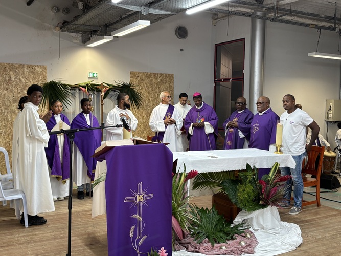 Cette édition des 3JP2025 s’est achevée en début de soirée par la célébration eucharistique présidée par Mgr Philippe GUIOUGOU, dans la grande salle du CBC de Jarry aménagée pour la circonstance, et par un temps de louange festif qui devait permettre à tout un chacun de repartir dans la joie et l’action de grâce, rempli d’espérance.