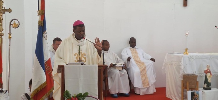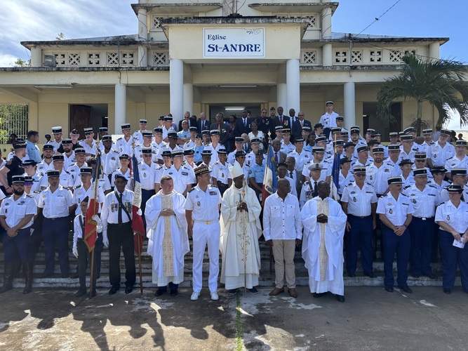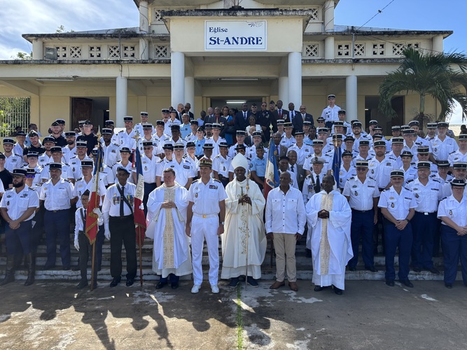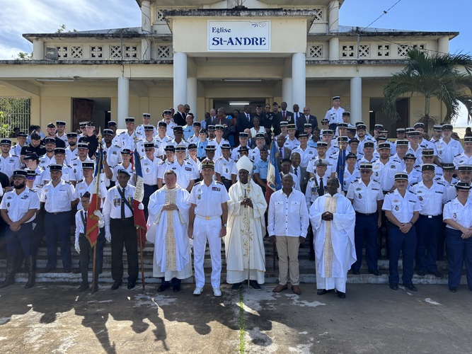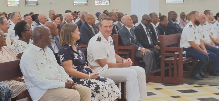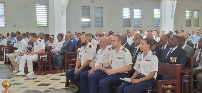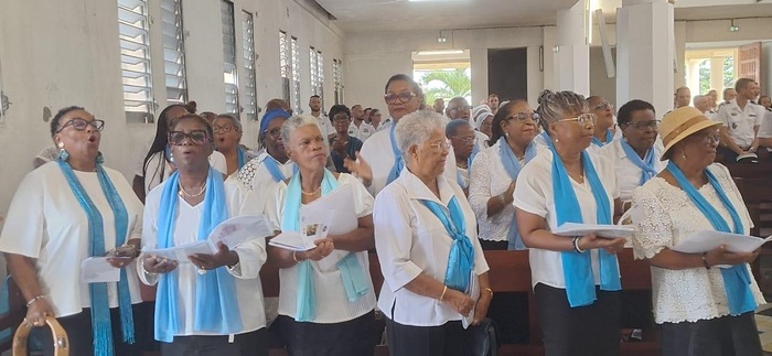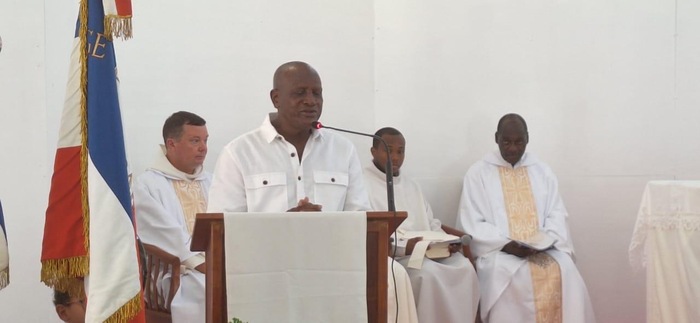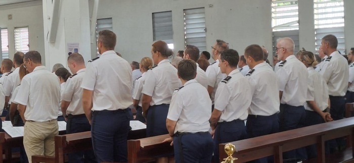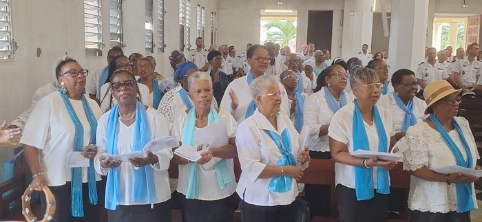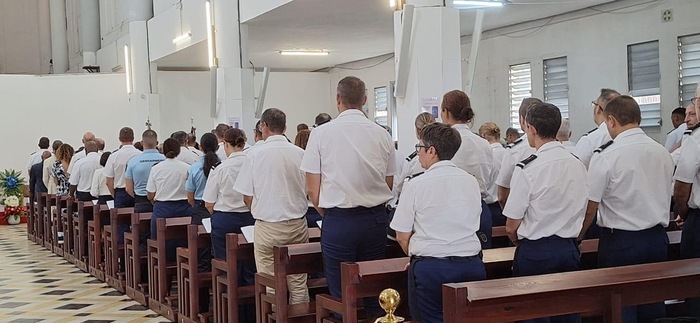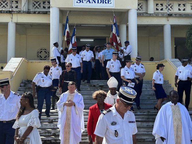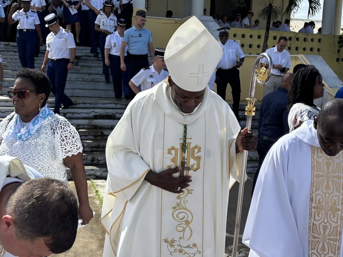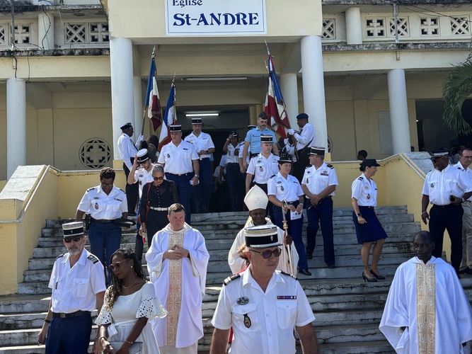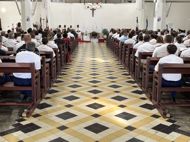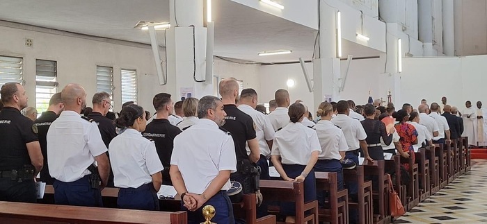 Mgr Philippe avait à ses côtés, le Père Godefroid, curé de la paroisse, son vicaire, le Père Côme et le Père Jean-Charles RIGOT, aumônier militaire. Le général Christophe PERRET, Commandant de la Gendarmerie Nationale Guadeloupe était présent, de même que de nombreux gendarmes venus des brigades et escadrons de l’ensemble du département.