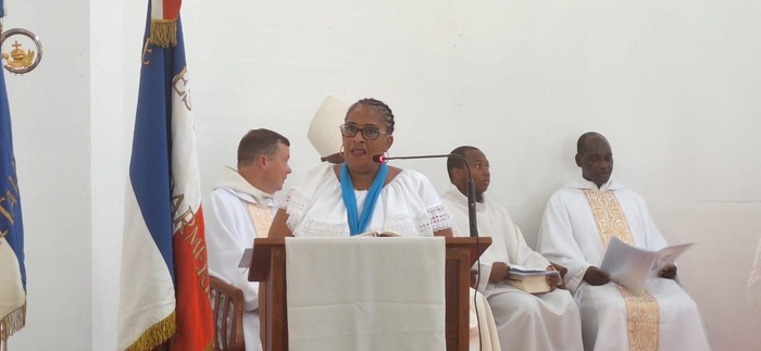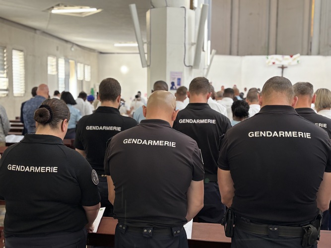 C’est devant une assistance bien singulière que le Pasteur de notre diocèse, Mgr Philippe GUIOUGOU, a célébré la messe, vendredi matin 12 décembre 2025, à l’église Saint André de Morne-à-l’Eau, avant la Solennité de la Dédicace de la Cathédrale Notre-Dame de Guadeloupe, le soir, à Basse-Terre. L’évêque de Guadeloupe a présidé la célébration solennelle de la Sainte Geneviève, sainte patronne et protectrice des gendarmes.