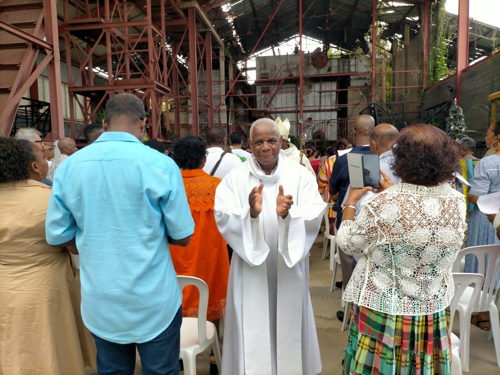 « La doctrine sociale de l’Église dit que le travail est là pour honorer l’homme, le relever et lui donner une dignité. Notre Guadeloupe a été façonnée par le travail agricole et industriel, mais celui-ci est actuellement en quête d’un renouveau et d’une agriculture plus humaine. Prions pour que ce lieu devienne un peu plus un espace de transmission, pour bâtir l’avenir. Confions à Dieu nos agriculteurs, célébrons nos familles pour que nos sentiers de vie, rejoignent le chemin de Dieu. Que Saint Eloi nous permette de trouver dans nos cœurs une juste place pour le Seigneur » a ajouté Mgr Philippe.
