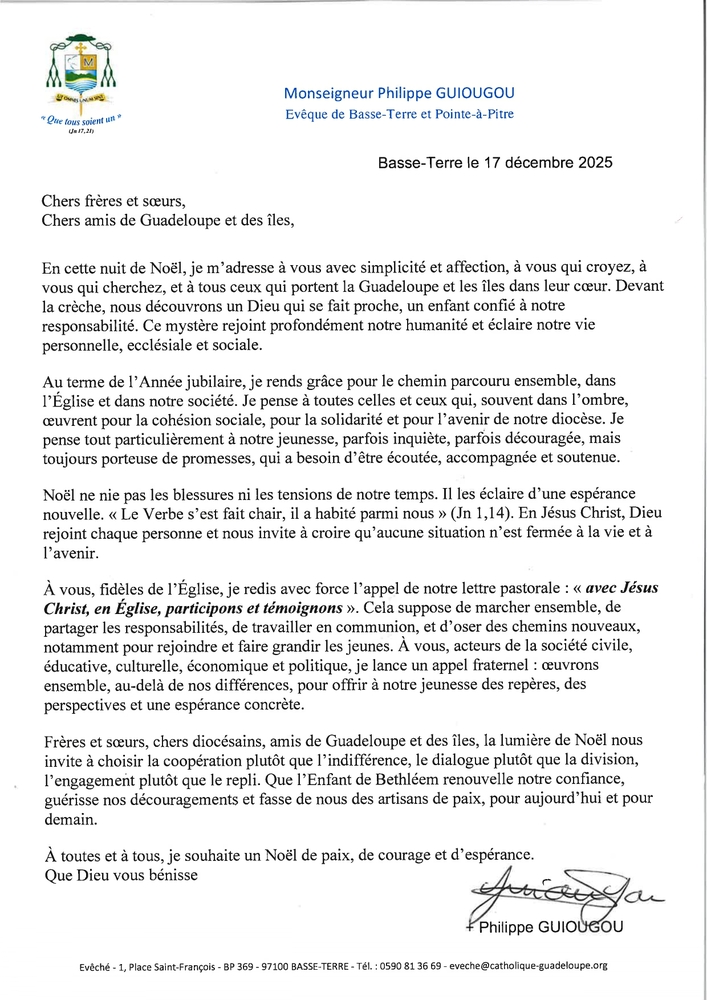 Mgr Philippe GUIOUGOU a appris avec douleur tragique accident qui s’est produit vendredi soir 5 décembre, à Sainte-Anne, faisant 19 blessés dont 7 [...]