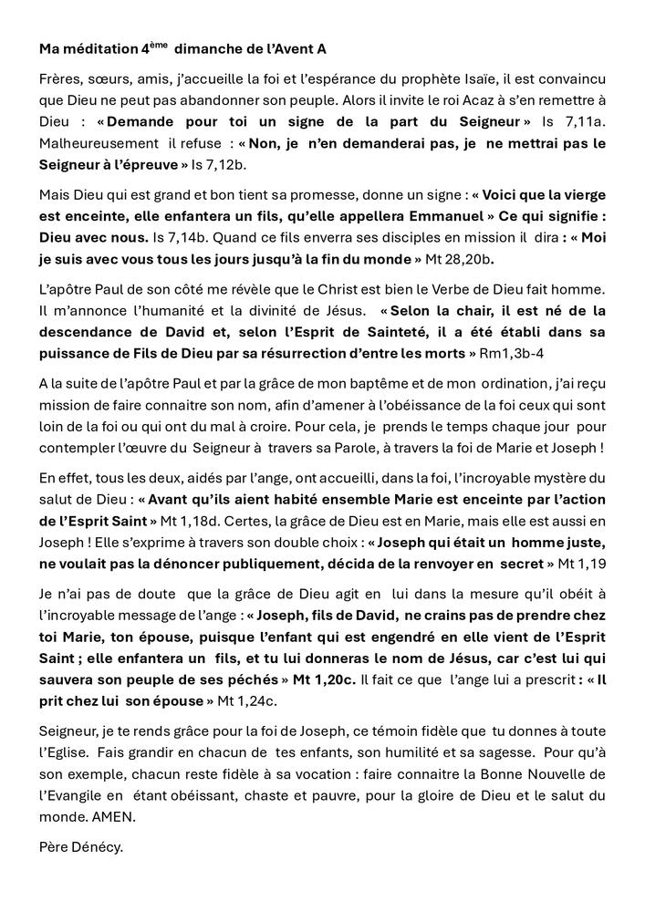 La méditation des textes de la liturgie du 2ème dimanche de l’Avent (Année A) par le Père Roland KINKOUNI, curé de la paroisse de Baie-Mahault.
