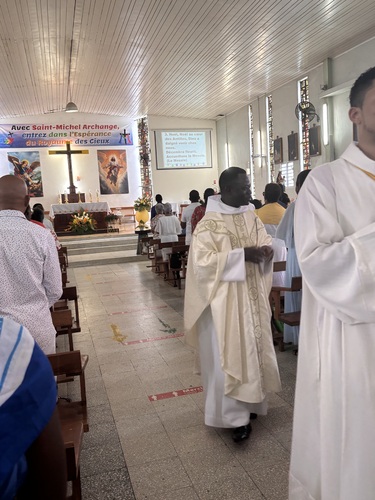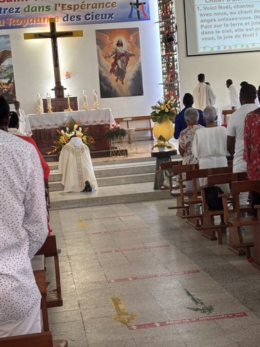 Après la lecture de l’Evangile, Père CAPO démarre son homélie ainsi « En ce jour très saint de Noël Vous ne pouvez pas imaginer , nous célébrons notre entrée dans la plénitude des temps, c’est la phase finale du salut de l’humanité »