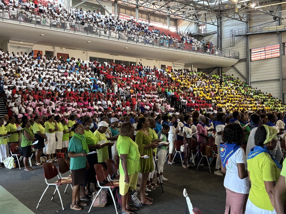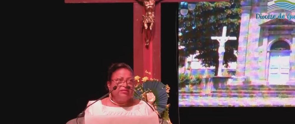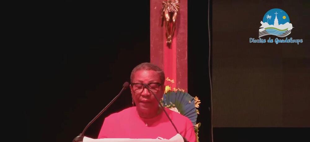 « En ce jour de clôture de l'année jubilaire, je rends grâce pour cette année qui a été pour moi un temps de passage, un temps de vérité. Le 25 octobre dernier, à l'église Saint-Jean-Baptiste du Moule, devenue sanctuaire, j'ai été profondément marquée par tous ces nombreux pèlerins venus franchir cette porte. J’avais le sentiment que chacun venait déposer quelque chose, quelque chose qui semblait dire : Seigneur, je te fais confiance. Fidèle à l'Église depuis petite, jeune d'Église, je me suis concrètement engagée en tant que catéchiste depuis plus de dix ans au sein de la communauté. Ce jubilé m'a rappelé à quel point la foi ne doit pas être une fuite du réel. Au contraire, nous sommes appelés à être en responsabilité collective : parents, éducateurs, catéchistes, jeunes, mouvements d'église, chacun a sa part. Quand je regarde notre société aujourd'hui, et je vois les défis importants que l’on doit regarder sans se voiler : la violence, la perte de repères, la solitude, la souffrance, la fragilité, la pauvreté et l'inquiétude pour l'avenir. Sœurs et frères, la foi n'est pas un refuge face à toutes ces réalités. J'ai 40 ans et je peux dire avec beaucoup d'humilité que ma foi, elle est encore en chemin. Avec ce jubilé, ainsi que tous les autres événements qu'a accueillis notre paroisse du Moule en 2025, j'ai compris un essentiel : l'Église est vivante par les femmes et par les hommes qui s'engagent. Pour cela, j'ai aussi compris que Dieu ne me demande pas d'être parfaite. Il me demande d'avoir un cœur disponible, un cœur ouvert, un cœur qui choisit l'amour plutôt que la peur. Monseigneur et tous, je crois que ce soir, la porte, elle ne se ferme pas, bien au contraire. Tu m'envoies en mission. Je serai lumière de l'Évangile partout où je serai. Je souhaite concrètement, avec ce témoignage, que chacun reparte avec une abondance, une abondance dans le cœur, une abondance pour la paix, une abondance pour le pardon, une abondance pour le courage d'aller vers. Que notre Église en Guadeloupe, avec son pasteur Mgr Philippe GUIOUGOU, demeure une église d'espérance, proche des réalités humaines et fidèle à la charité du Christ ».