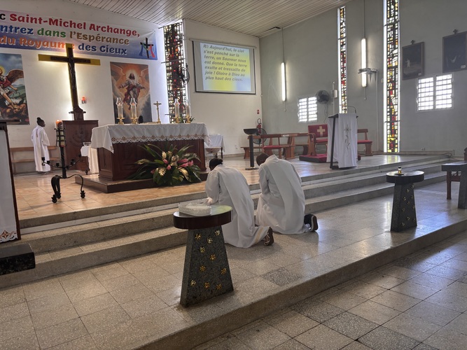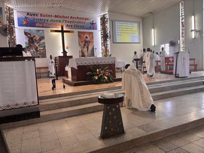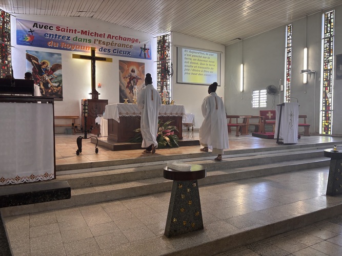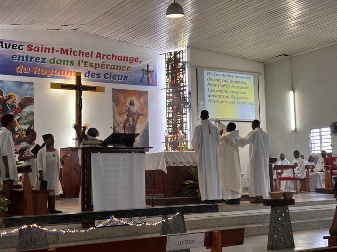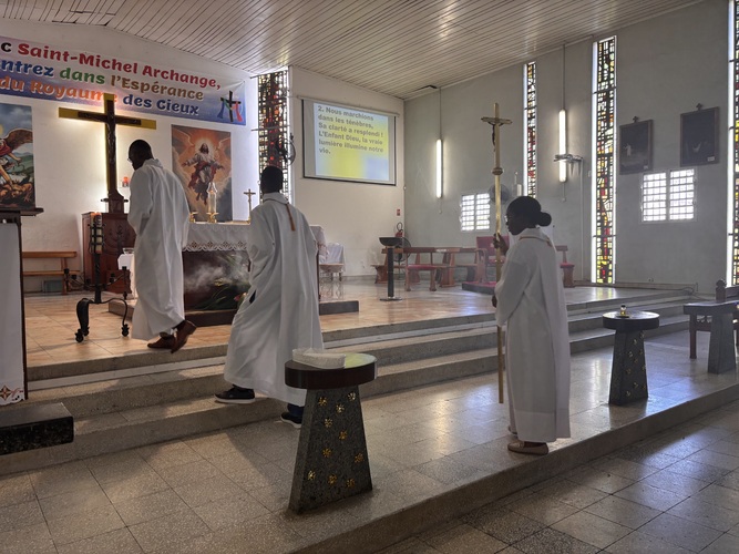 L’entrée des servants d’autel et du Père Capo au début de la Messe.