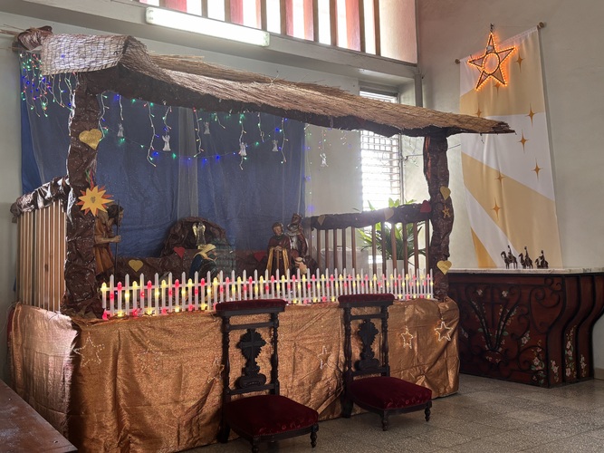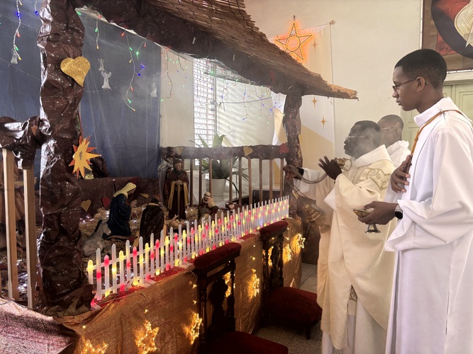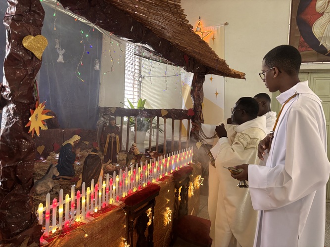 Après s’être rendu près de la crèche avec l’encensoir, la chorale a entonné le Gloire à Dieu